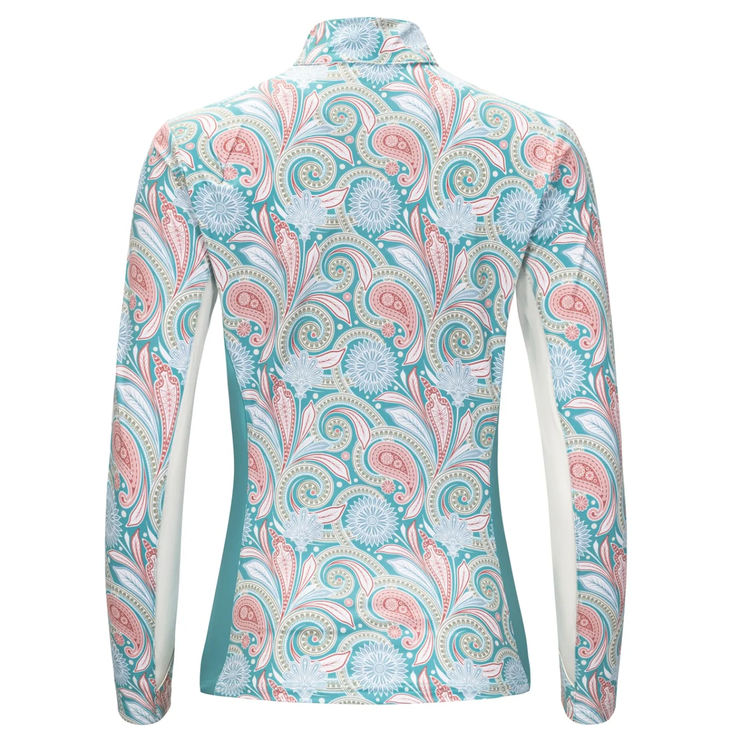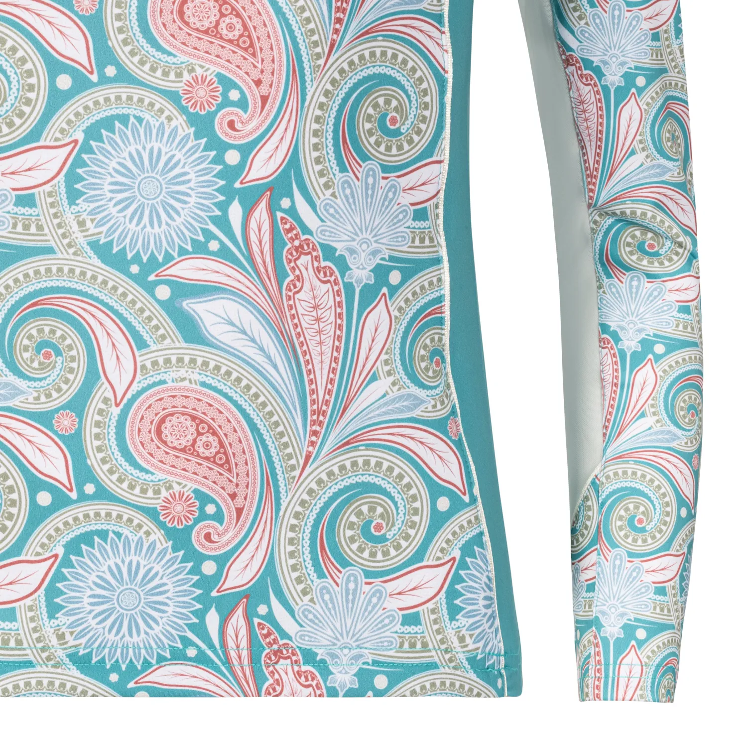 The Viva Quarter-Zip Long Sleeve Shirt is made of Arista’s lightest weight performance fabric in a fresh paisley print. Moisture-wicking technology keeps you dry, and high spandex content ensures your freedom of movement. The surface of the fabric is lightly brushed and smoothed to give you a luxuriously soft feeling and to eliminate chafing. An environmentally friendly finish ensures your shirt stays fresh, hygienic and odor-resistant.