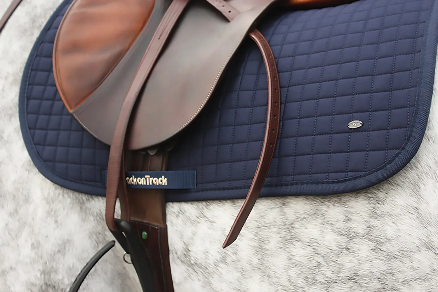 The Back on Track® All-Purpose Saddle Pad is made with pure, 600-gram cotton padded with 200 grams of Welltex® felt. This well-composed padding helps control temperature, provides breathability, distributes pressure and absorbs shock. The cotton outer is a timeless look ideal for training and competition; the small, square quilt pattern ensures smooth, stable support for your saddle.