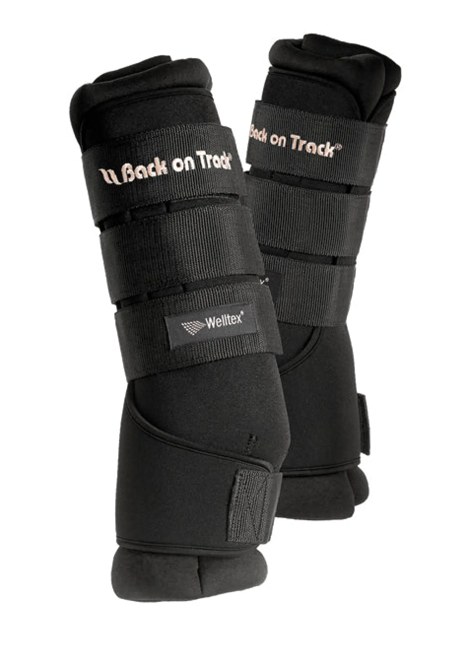 Back on Track® Royal Quick Wraps with Welltex® technology are all-in-one standing bandages that may help decrease swelling and keep your horse’s legs cool and tight. State-of-the-art Welltex material with embedded ceramic particles uses the horse’s own body energy to create a soothing far infrared effect, allowing for increased blood circulation and relaxed muscles, tendons, joints and ligaments.