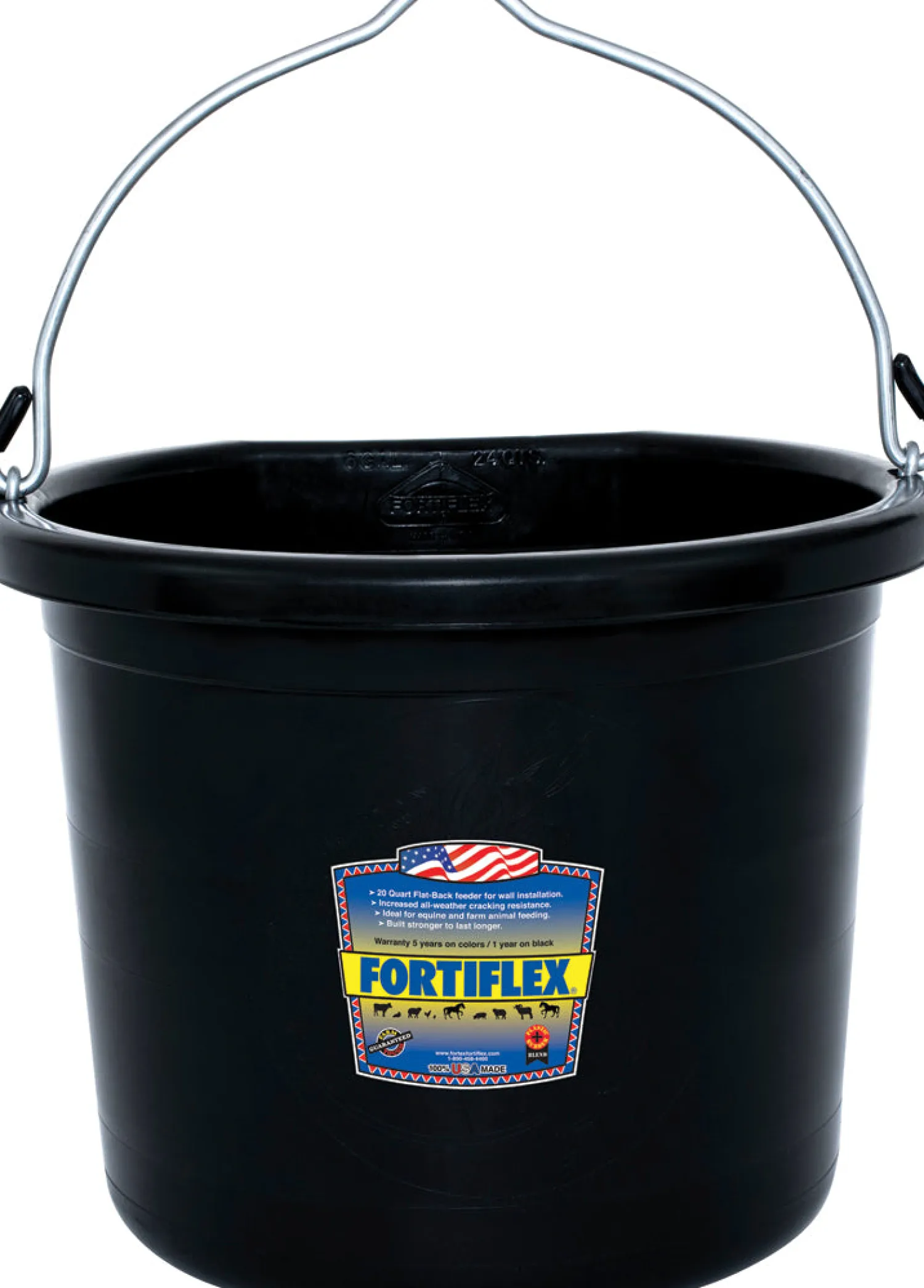 The Fortiflex® Standard 20-Quart Flatback Bucket stays flat against a wall or fence post, providing a stable container for watering or feeding your livestock. Made of heavy-duty FORTALLOY® rubber-polyethylene, it won’t crack or break even in extreme cold. Its economical price and assortment of colors makes this a smart choice for any stable.