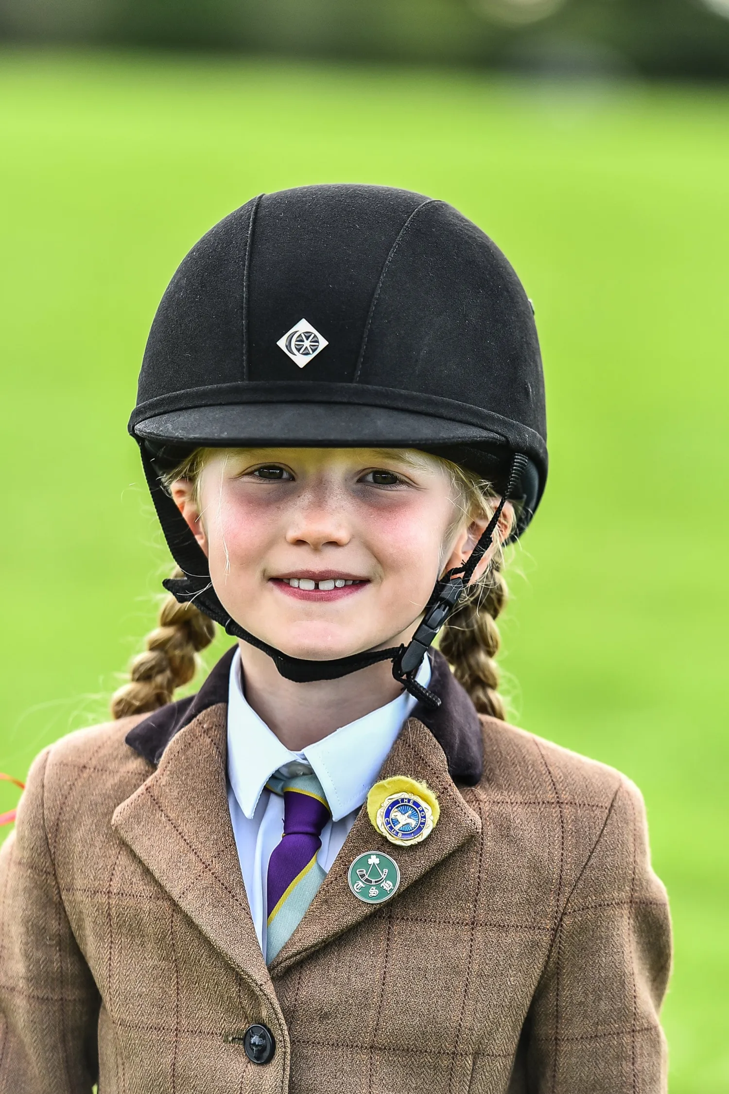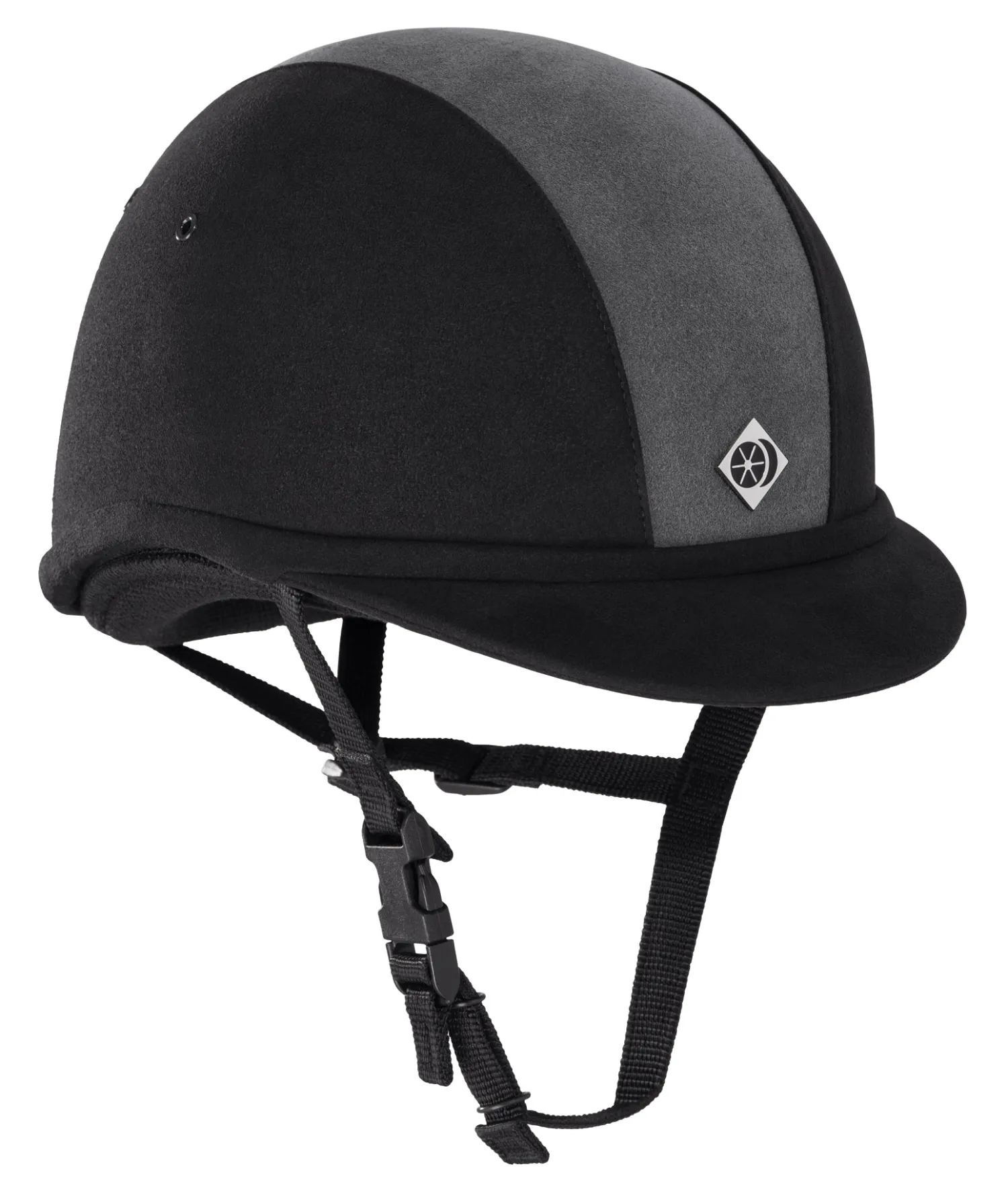 Charles Owen helmets are made to remain in place during riding and in the event of a fall. Each helmet grips the occipital bone located at the base of the rider’s skull so that the helmet cannot shift and alter the area of protection offered. This model has a black harness in a unique crossover design that utilizes a double tension adjuster on soft-edge nylon webbing. It completes the finished look and offers strength and security.