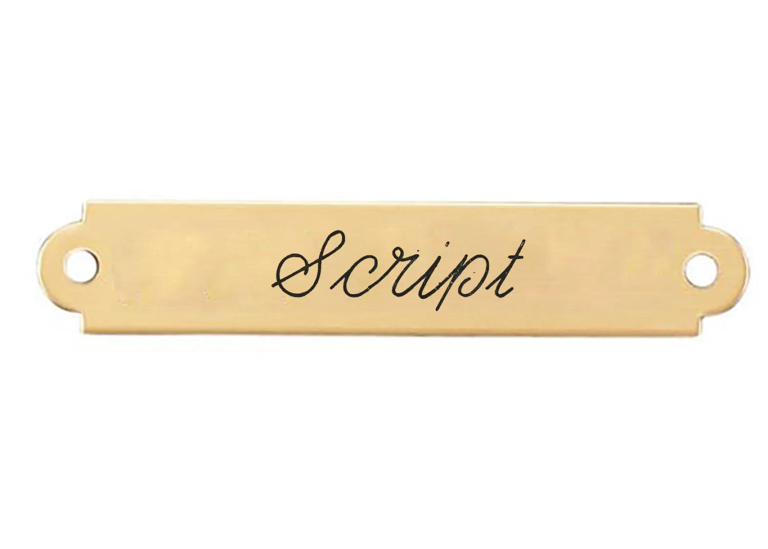 Personalize your saddle the classic way with our 2″ Fancy Saddle Nameplate in brass or German silver. Your plate will be engraved in the USA in your choice Block, Old English, Roman or Script letters with your name or your horse’s name.