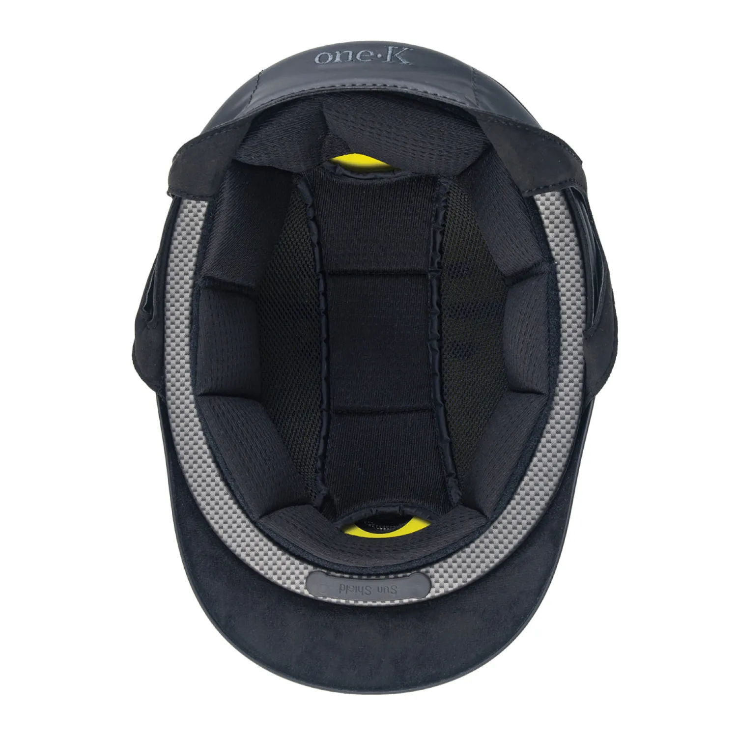 The One K™ Defender MIPS® CCS Gloss Riding Helmet with an eye-catching black gloss top and sparkling black crystal rail is ready to make a statement in the ring. The Defender MIPS CCS features a matte Polycarbonate and Advanced ABS Composite outer shell; injection molded shell design; washable quick-dry, moisture wicking liner; stainless steel mesh-covered vents; comfort padded harness with synthetic suede lining, hook & loop adjustment, and Fastex buckle; two side, two front, one back, and two center stripe vents. One K™ Helmets boast the perfect synergy between advanced technology and aesthetically pleasing design.