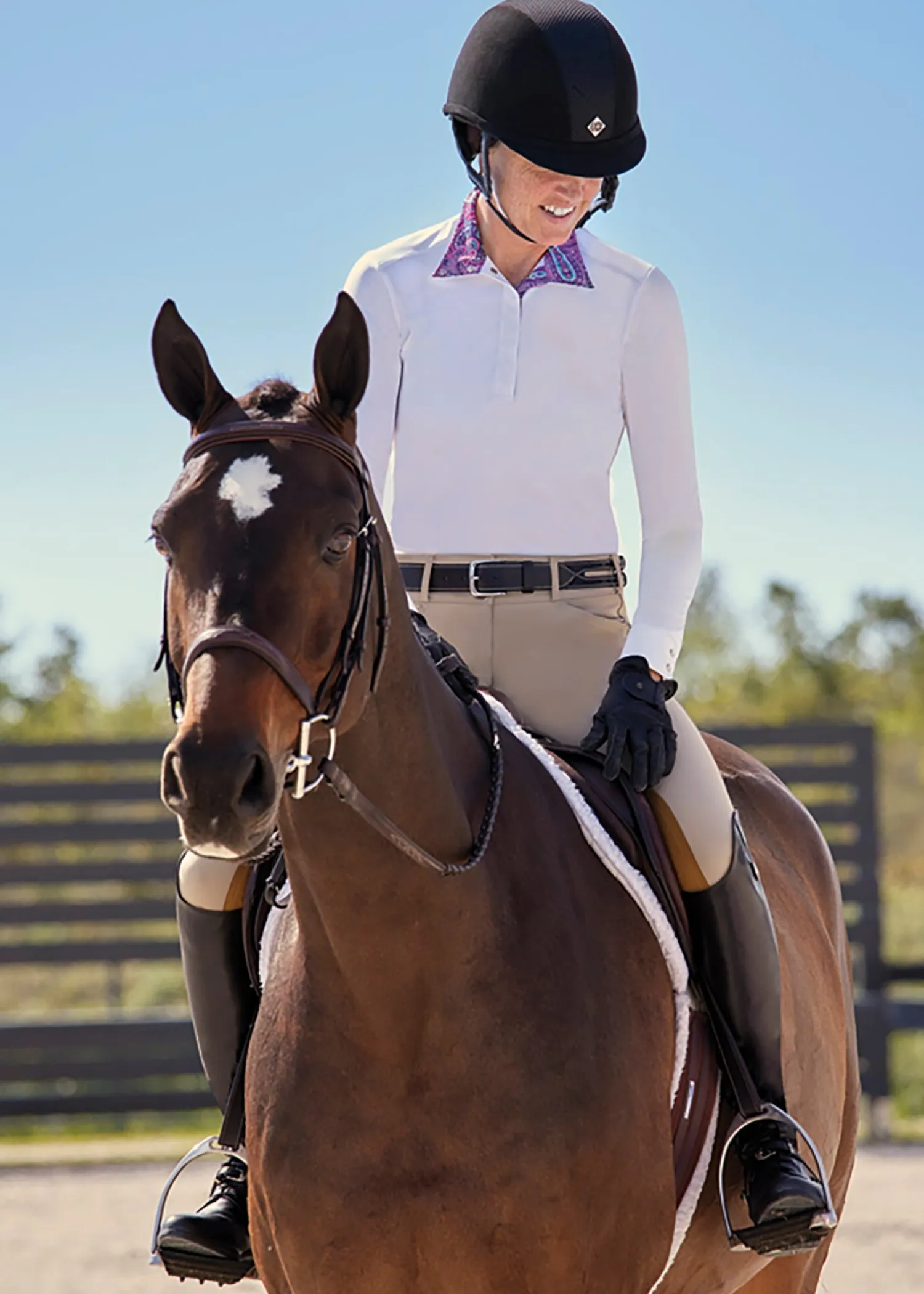 Refreshed with new trims exclusive to Dover Saddlery®, this Beacon Hill Long Sleeve Show Shirt offers show day comfort, style and polish all with the fit for which Essex Classics is known. It is made of cool nano-tech performance fabric that wicks moisture, provides stretch and contains antibacterial and deodorizing elements.