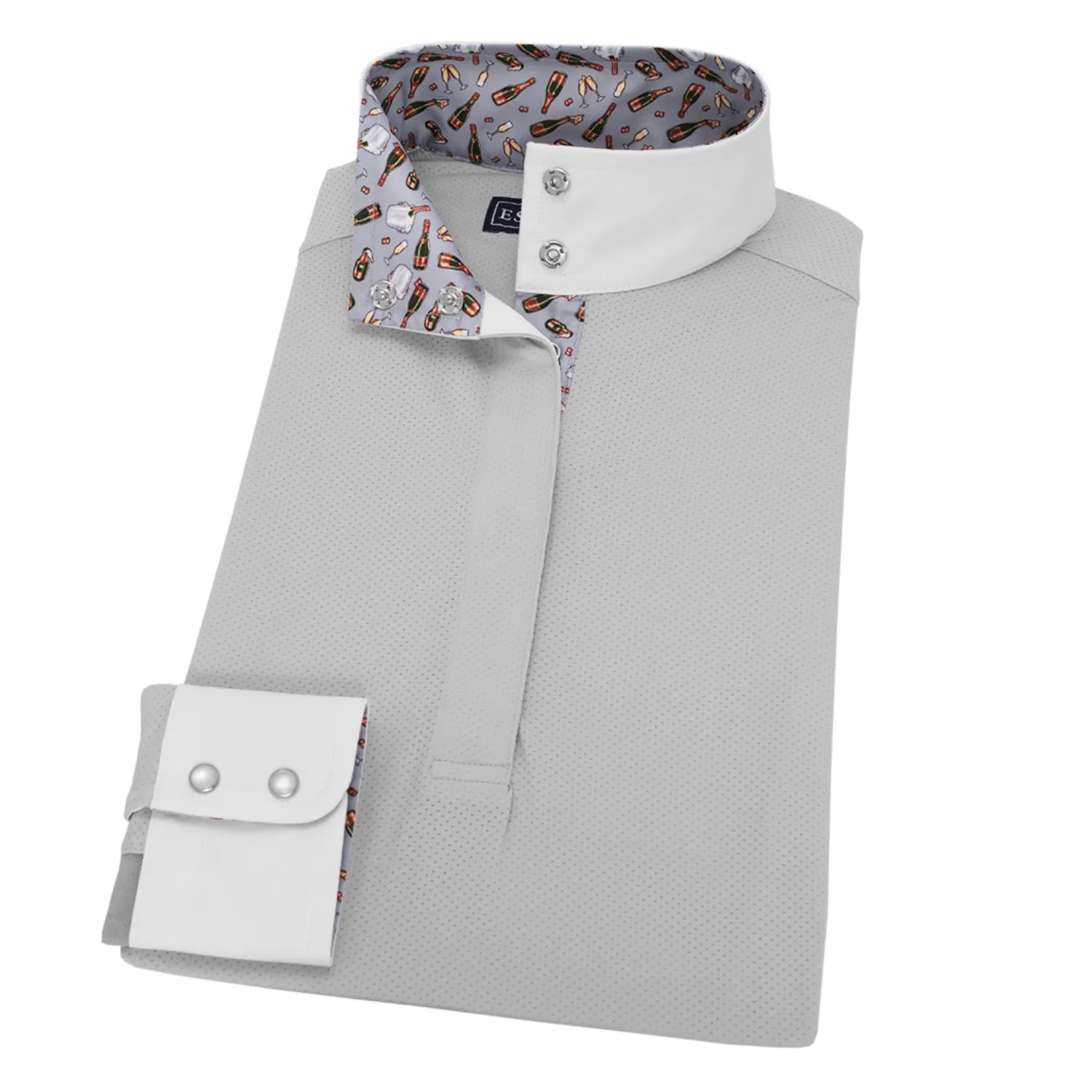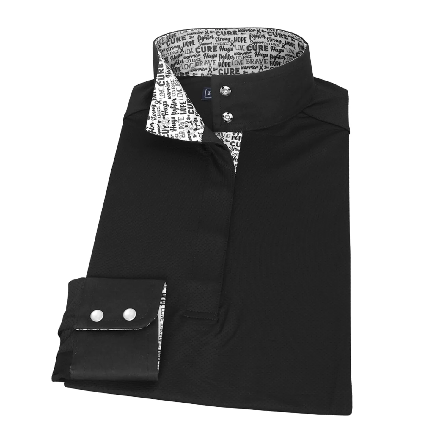 The Essex Classics Ladies’ Jumper Long Sleeve Show Shirt, offered in black, is designed for shows at which show coats are waived and to blend in with an air vest if one is worn over the shirt.