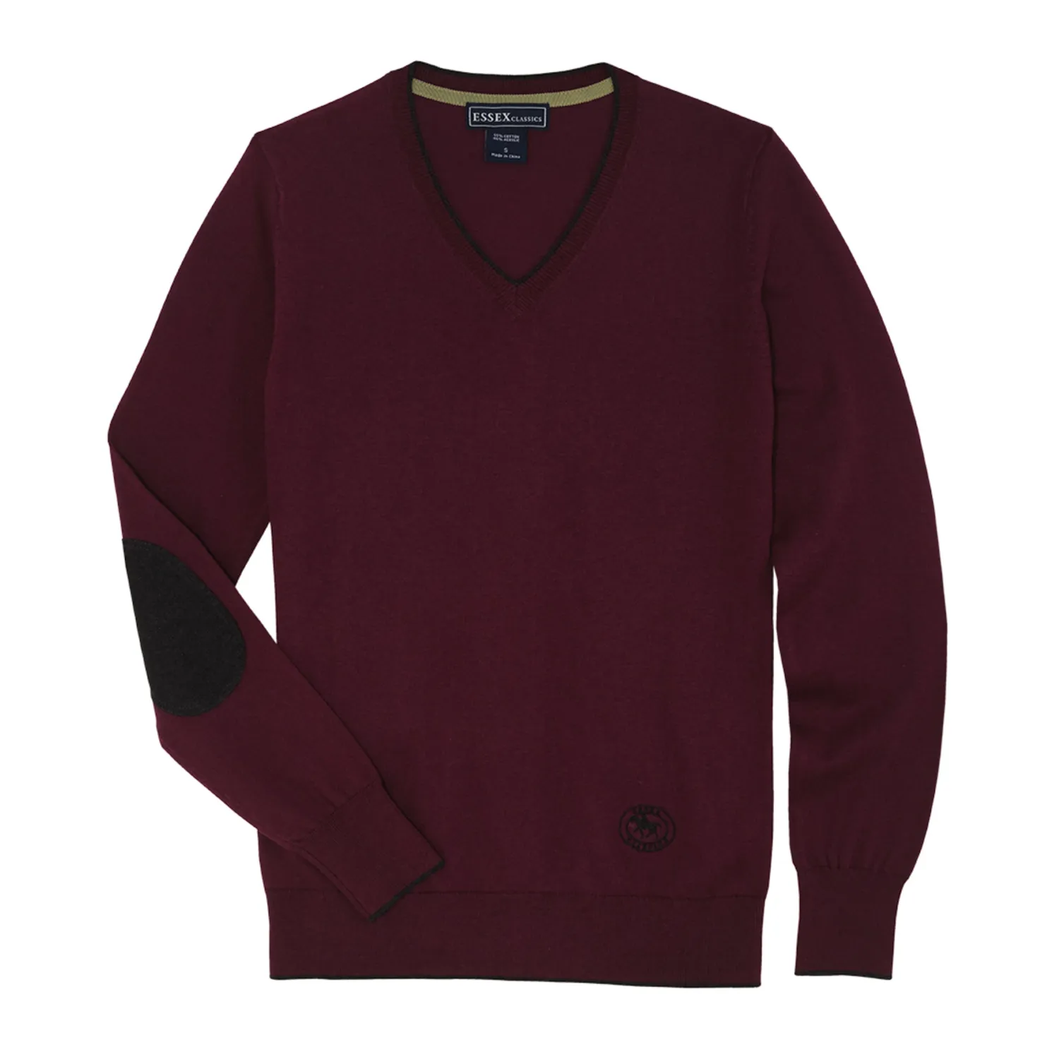 The Trey V-Neck Sweater is a classic layer for lightweight warmth. Fine-gauge knit with stretch promises year-round comfort with temperature control. This easy, wash-and-wear style has contrast elbow patches and trim and an embroidered logo.
