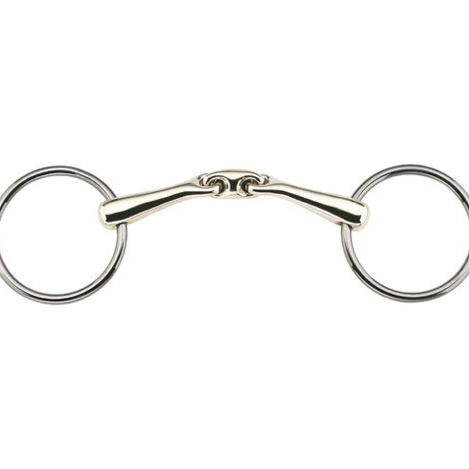 The Herm Sprenger KK Ultra Sensogan® Loose Ring Bit has a 16mm Sensogan mouthpiece with a center link that is rotated 45° to rest smoothly on the tongue. This design helps promote a sensitive and precise connection between the rider and the horse. Stainless steel rings are 70mm.