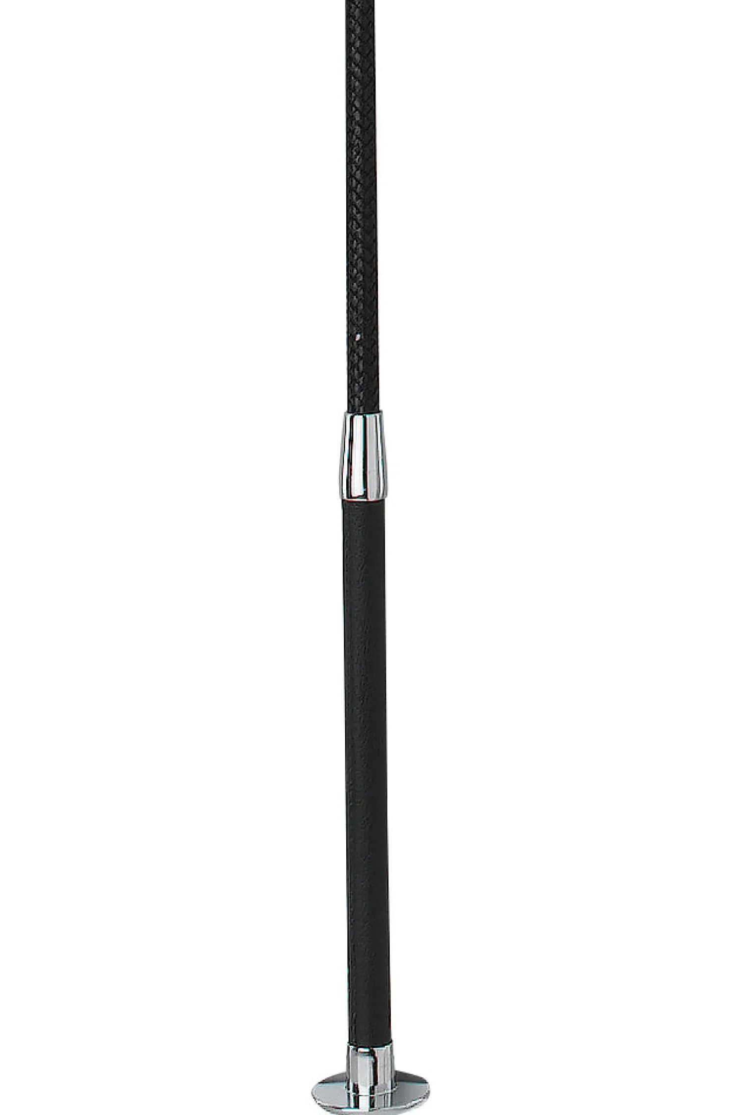 A classic style suitable for training and competition, this Wonder Whip® Dressage Whip is made with the finest materials and workmanship. The leather handle, with just one stitched seam, adds grip while the elegant chrome mushroom cap adds to your secure hold. It features a fairly flexible (medium flex) fiberglass shaft covered in woven polyethylene.