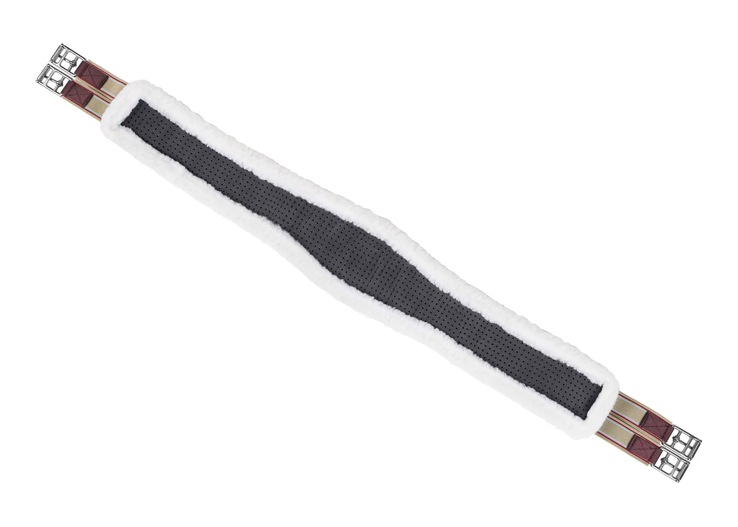 The Flex Rider® Comfort Flo™ All-Purpose Nonslip Neoprene Girth with White Fleece Edge has the classic look of a fleece-lined girth, yet it features a neoprene liner. The slip-resistant neoprene is perforated to allow airflow, while the synthetic fleece edges offer softness and a traditional look. A hidden gel pad in the center of the girth cushions the horse’s sternum.