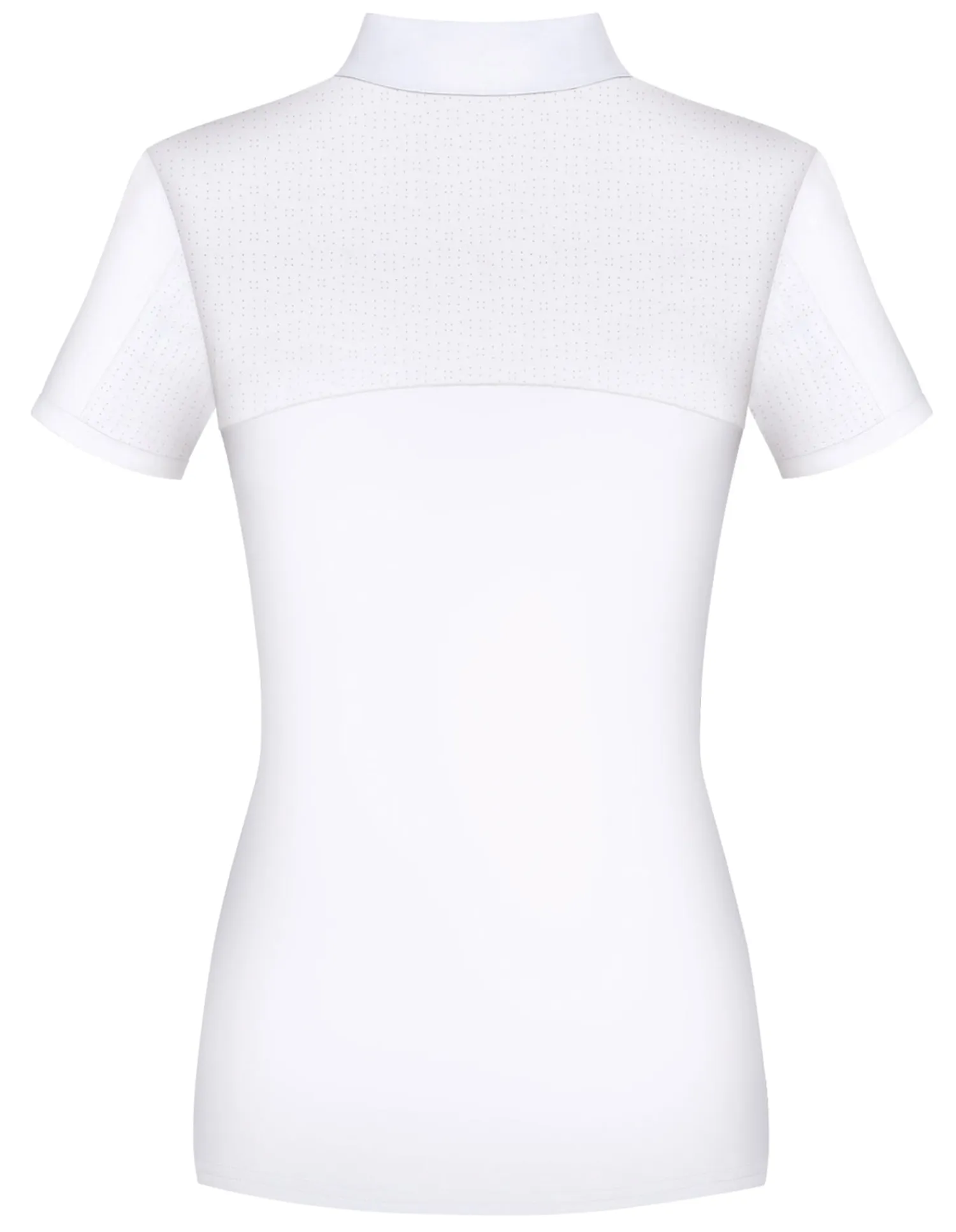 The Fair Play® Ingrid Short Sleeve Show Shirt is elegant and feminine in elastic and breathable recycled fabric. It provides enhanced airflow and protection from UV rays. Perforated inserts on the back and under the sleeves let air circulate.