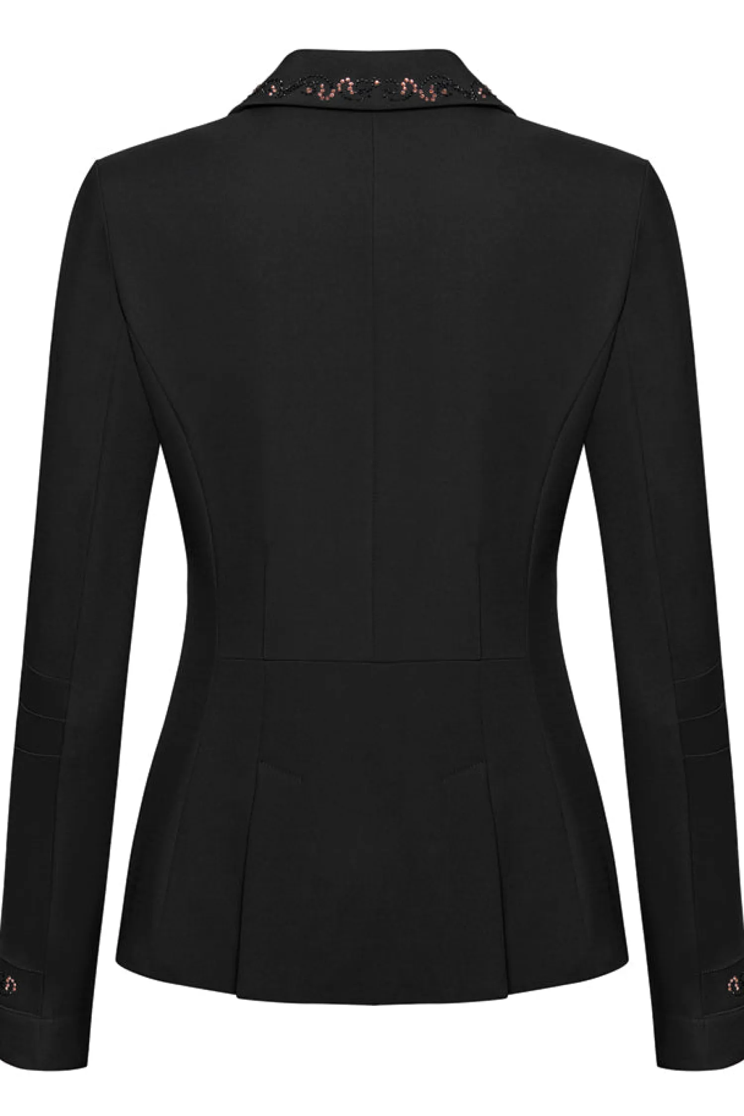 The Taylor Chic Show Coat is crafted in Poland and lined with a highly breathable mesh. Discreet eyelets under the armpits let heat escape, while rose gold and tonal crystals accent the collar and cuffs.