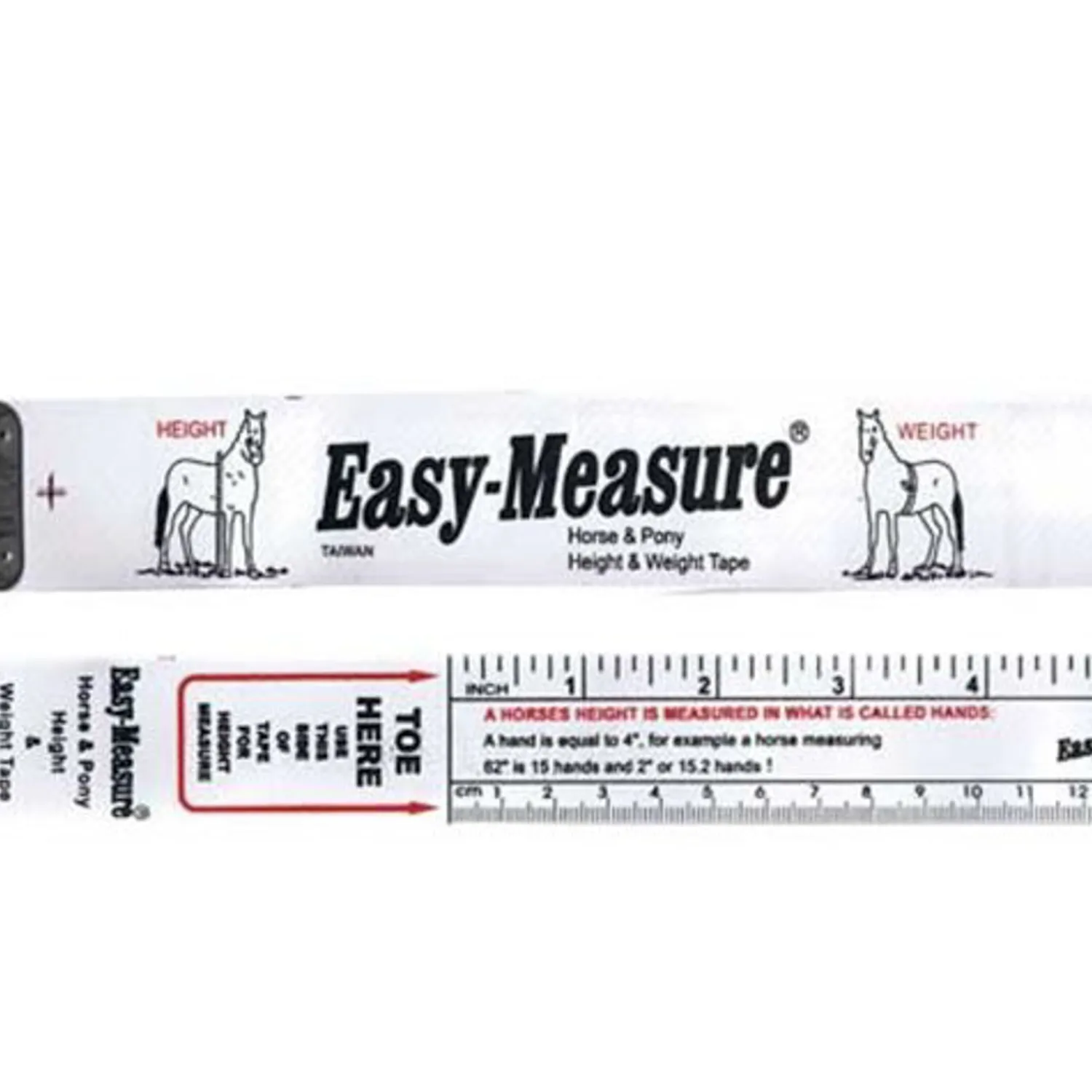 Easy Measure Height/Weight Tape for horses and ponies is made of vinyl-coated nylon. It measures height in both hands and centimeters and weight in both pounds and kilograms.