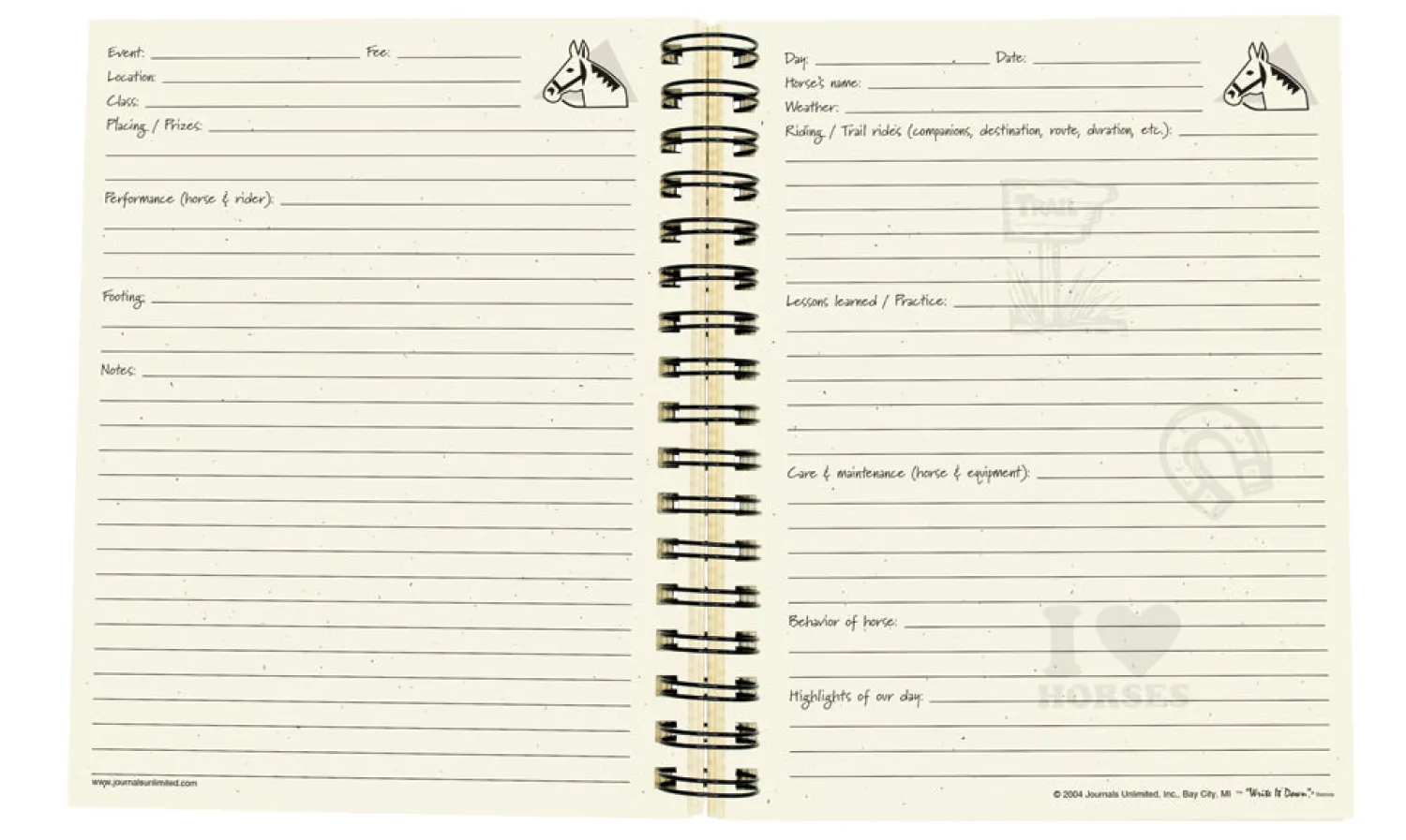A fun and useful gift for any rider, this journal is printed in the USA on acid-free, recycled 70-pound paper using soy-based ink. It has a durable hard cover design and 200 pages.