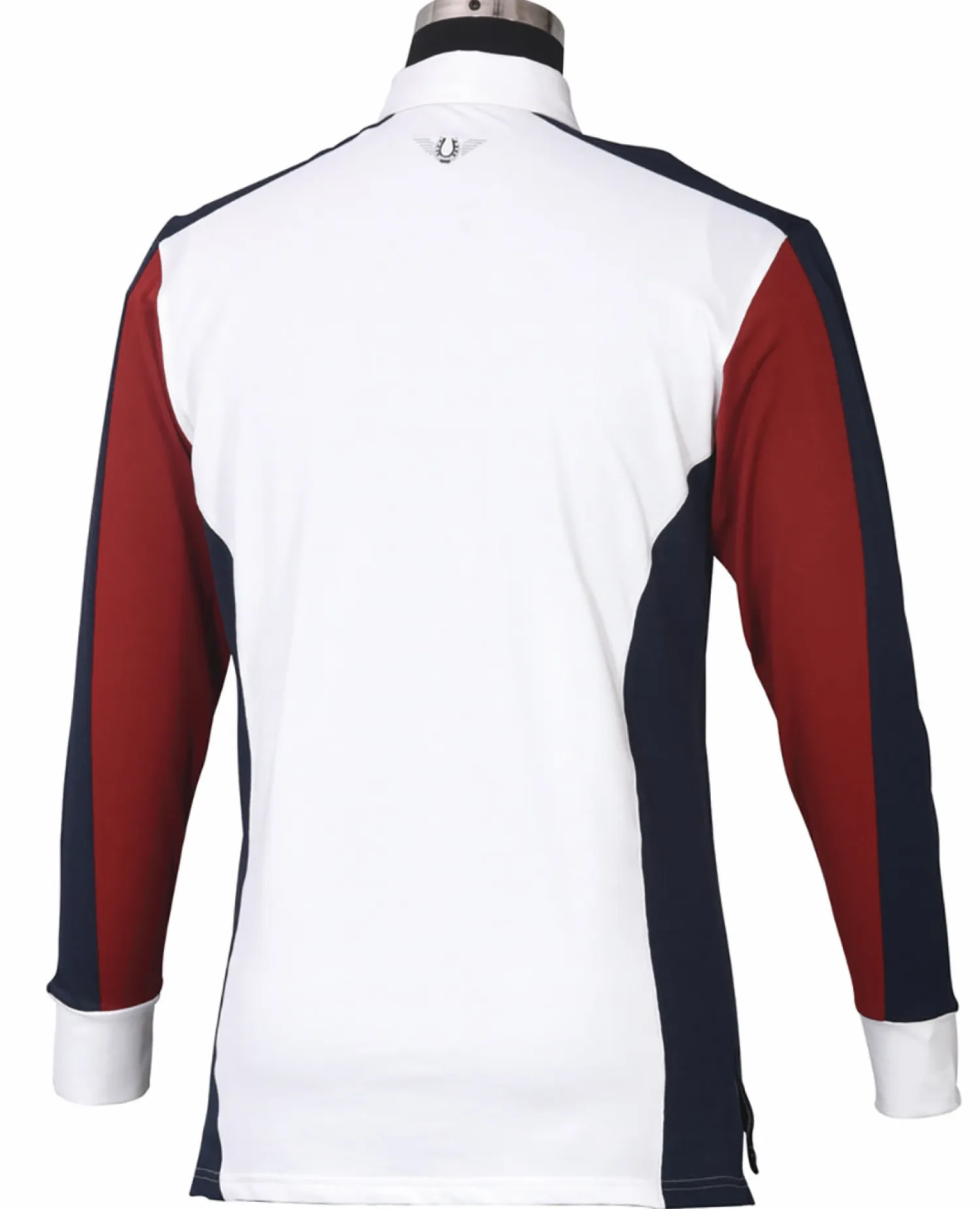 The TuffRider® Men’s Dennison Long Sleeve Show Shirt will give you a sophisticated presence while competing in the show ring. Designed with contrast colors on the side and sleeves, this shirt’s style lends a trendy look to the classic shirt.