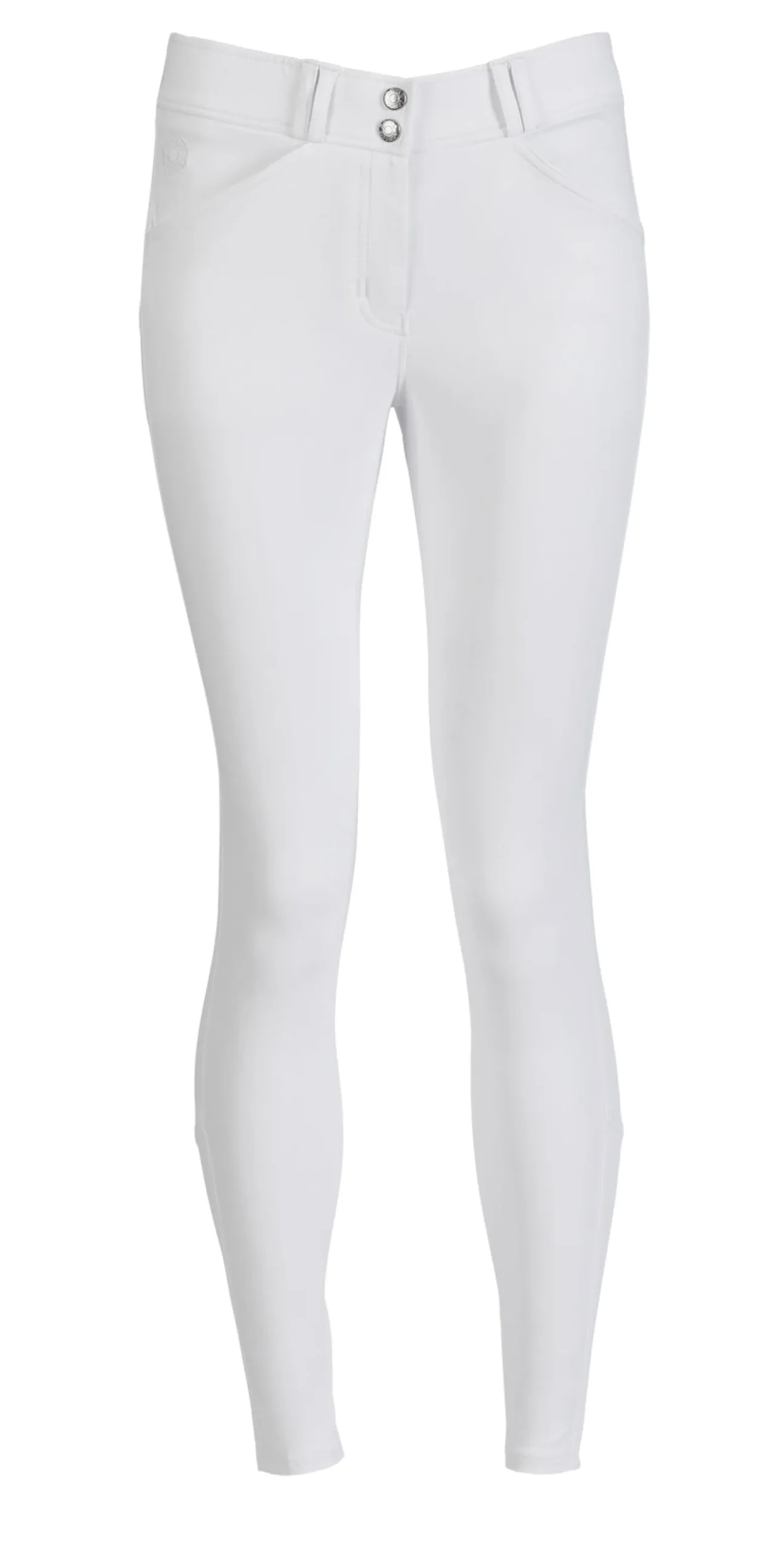 Single-layer, high-stretch calf panels provide a custom fit, eliminate bulk inside boots and allow easy on/off. Functional front slash and back flap pockets are made of low-profile stretch material for a no-show appearance on the outside and enhanced comfort on the inside. The silicone print knee patches feature a stylish equestrian design to give you flexible grip.