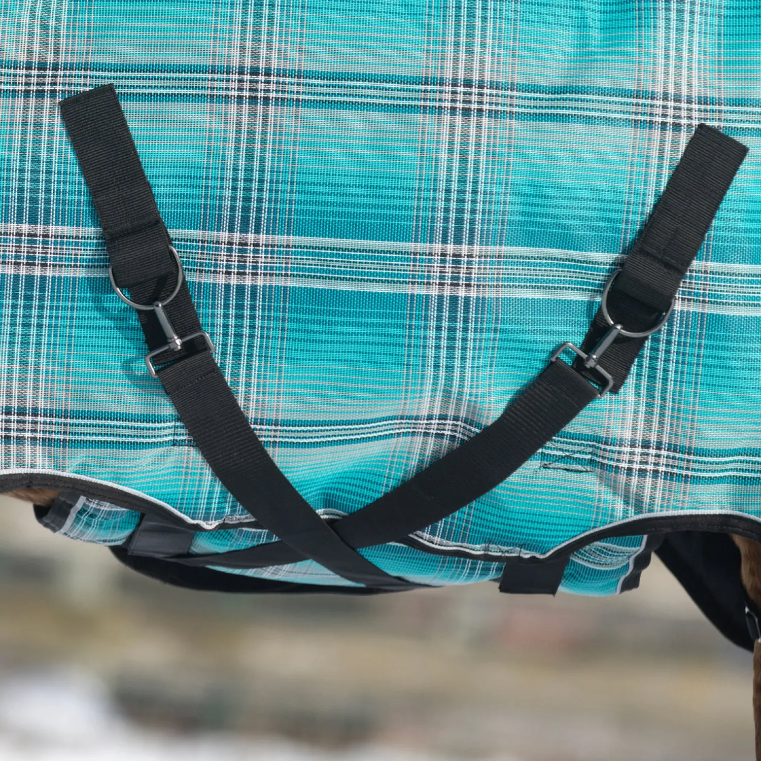 Under the Textilene®, a 100% waterproof and highly breathable layer keeps your horse dry. An inner layer of exclusive CoolPlus® pulls moisture away from your horse to help keep the inner climate dry. A 180-gram layer of hollow fiberfill acts as insulation to create mid-weight warmth.