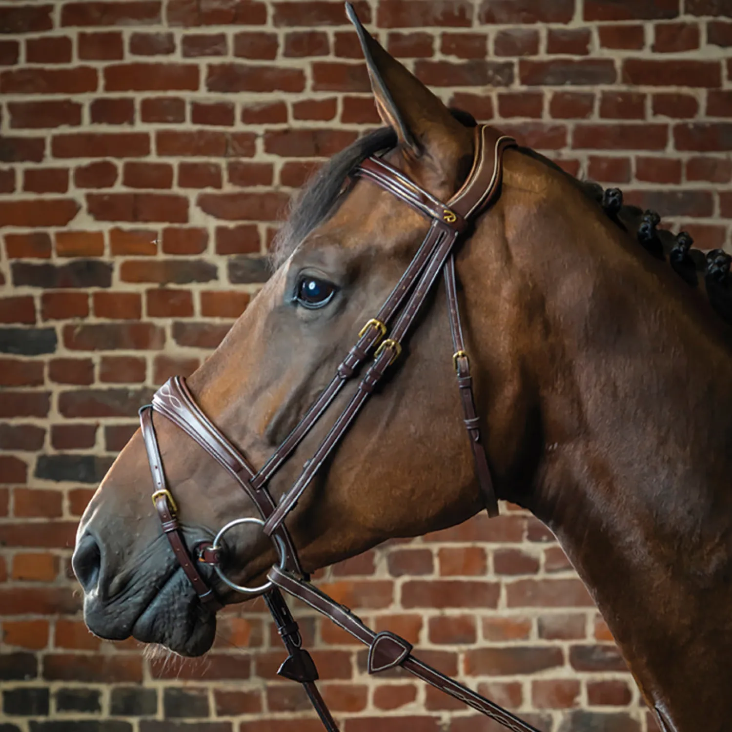 The choice of many of the world’s top show jumpers, the popular Dy’on® Anatomic Bridle is instantly recognizable as a Dy’on because of the distinctive, slightly-contoured padded, fancy-stitched nose and brow.