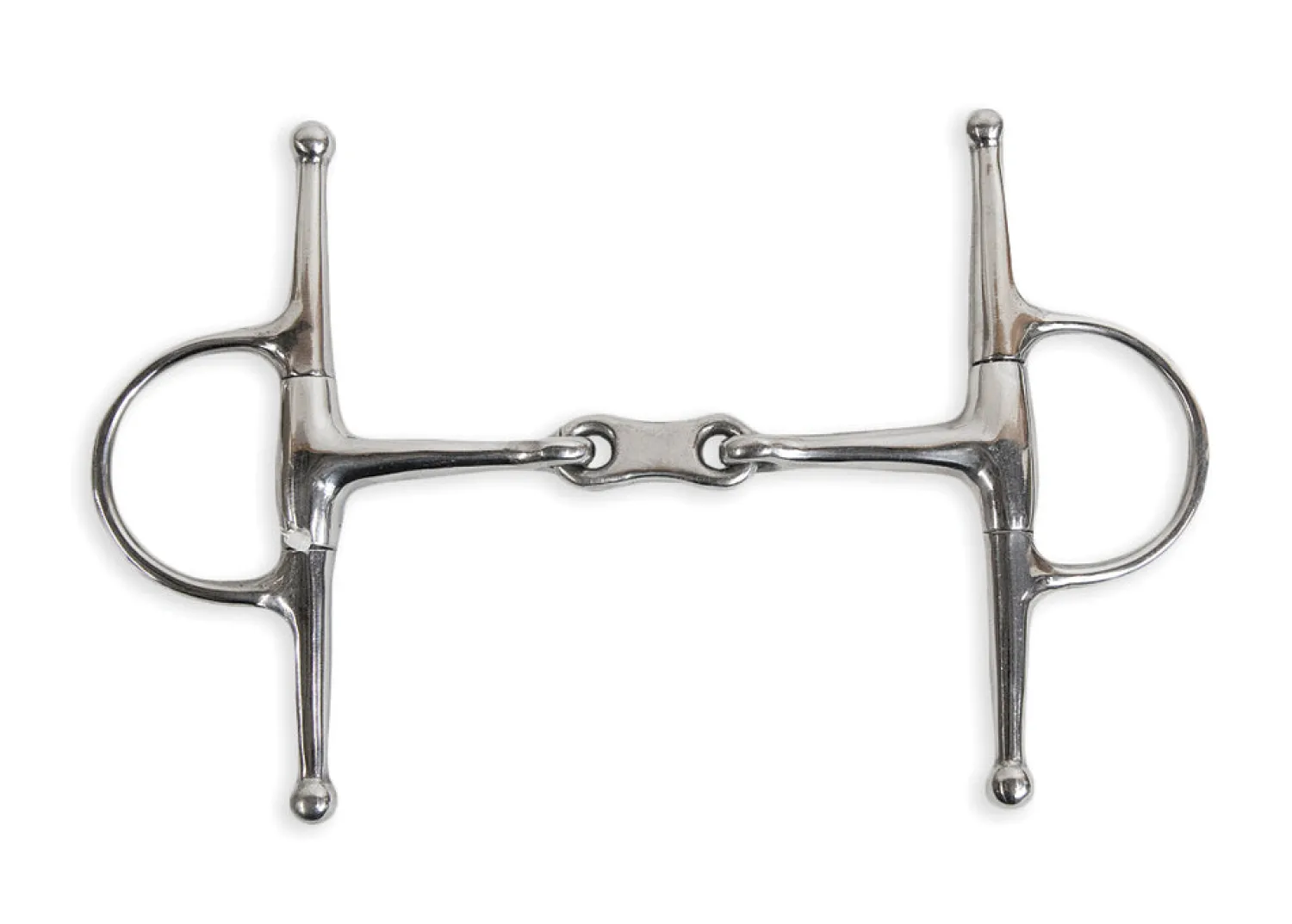 The Suffolk™ French Link Full Cheek Snaffle Bit features a double-jointed mouth with an hourglass curved center piece and traditional full cheeks. Some horses find the French link more comfortable than a single-jointed snaffle as it puts pressure on the tongue rather than the bars or palate. Full cheeks prevent bit from sliding sideways. Made of stainless steel.