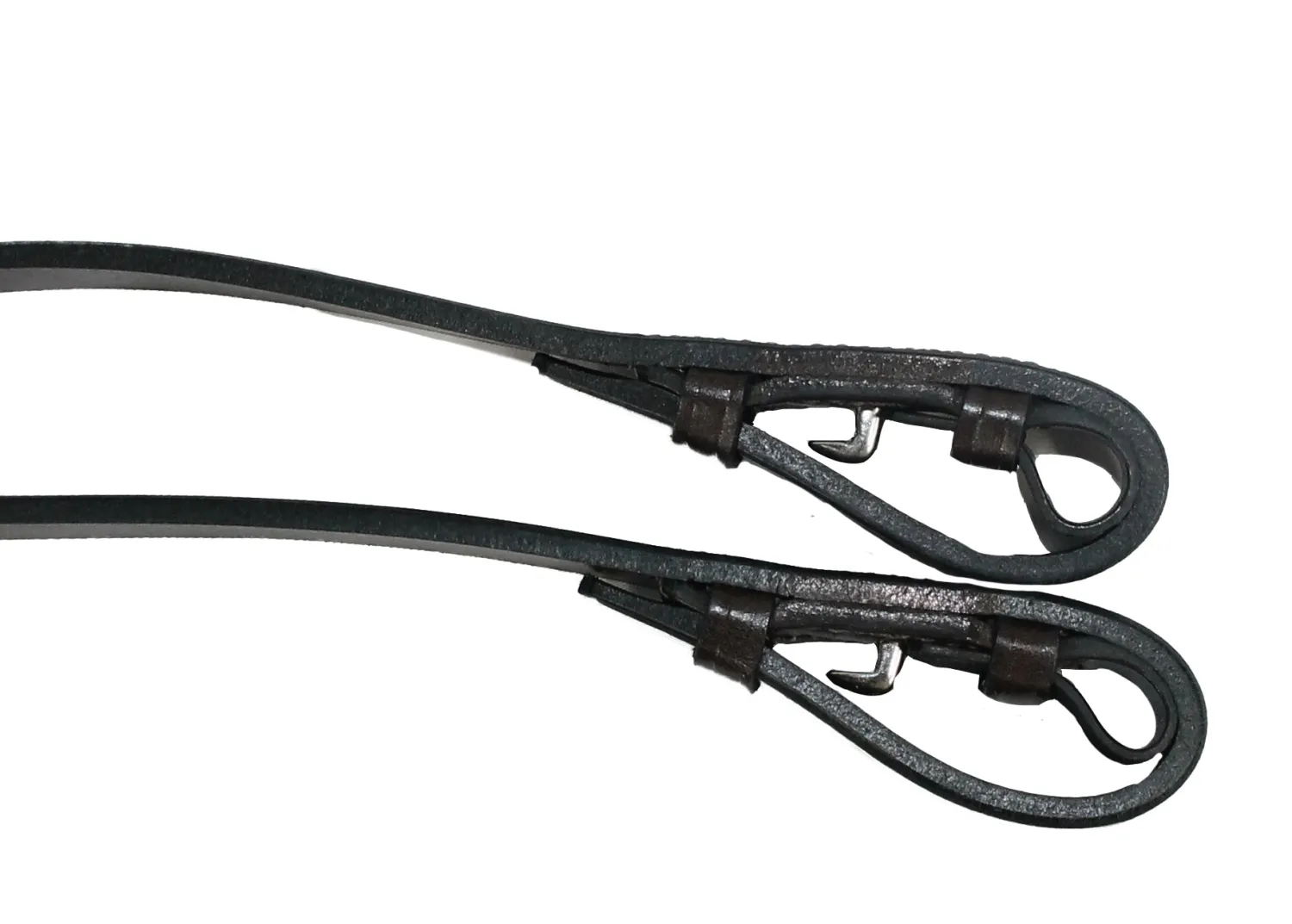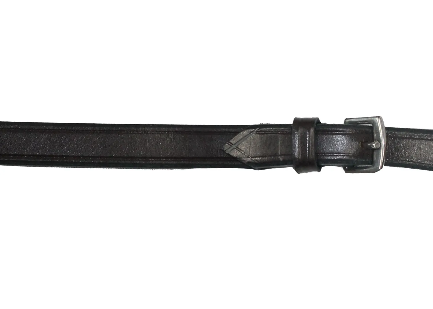 Suffolk™ Web Reins are made with leather hand stops and European-inspired buckle ends. 5/8″W x 54″L.