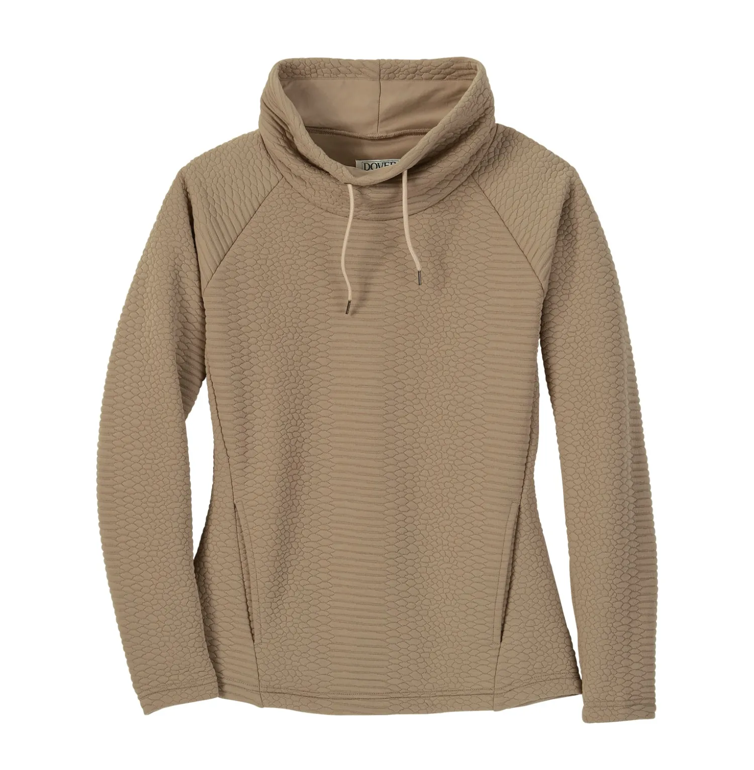 Bring out your wild side in the DS Mixed Animal Print Sweatshirt. A subtle, embossed alligator print on a comfortable stretch design elevates the classic sweatshirt to more elegant level. Brushed on the inside for softness, this breathable shirt has a wide slouch collar with slight crossover that makes it anything but ordinary. Discreet double-front hidden pockets and ample stretch let it look great and feel great in and out of the tack.