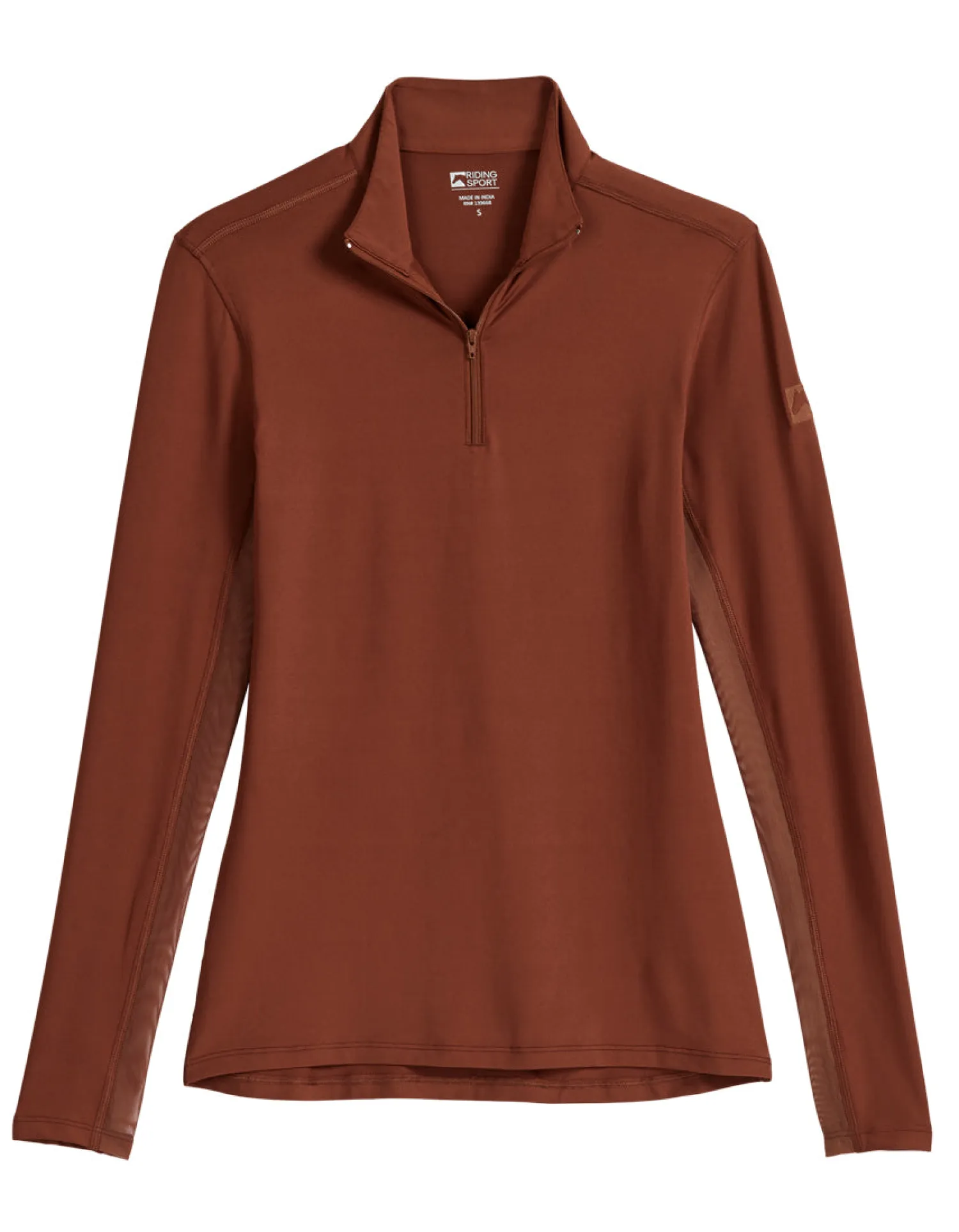 Mesh panels under the sleeves boost ventilation for cooling. Built-in stretch ensures your freedom of motion. YKK® zipper at quarter placket; mock neck.