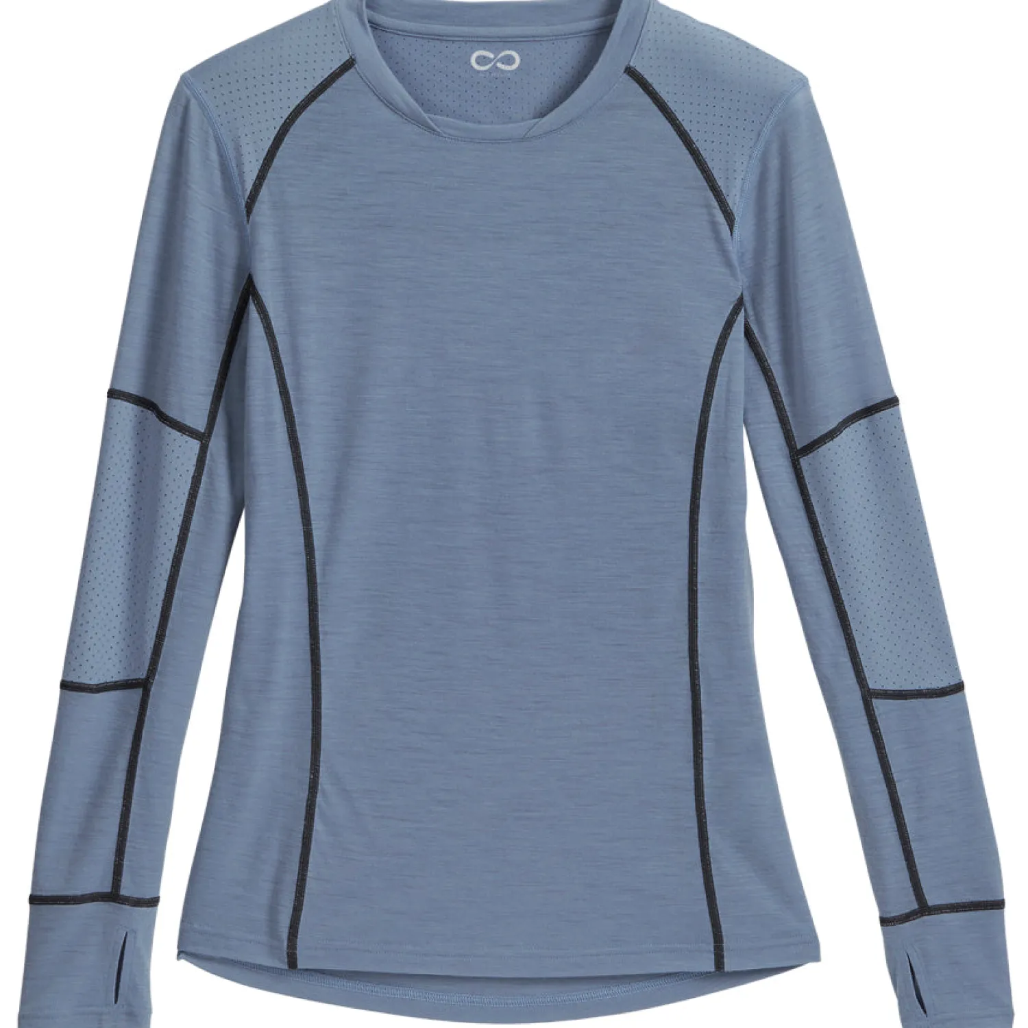 Wool helps regulate skin temperature in any season and provides resiliency; extreme stretch allows for your freedom of movement. Perforations on the sleeves and back add airflow where you sweat most.