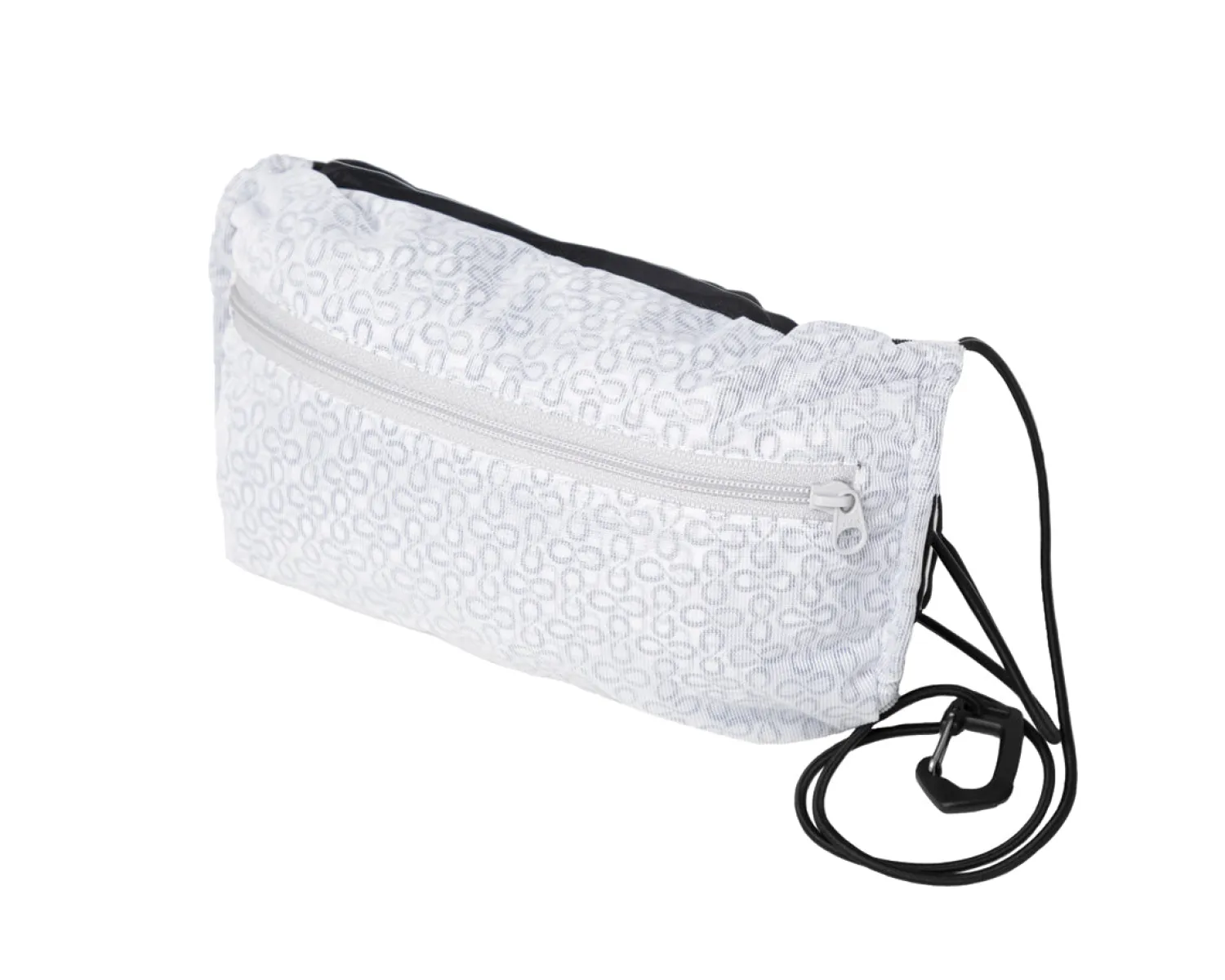 Features include an adjustable drawstring hood, YKK® front zipper and a subtle Stride logo print on inner portion of the fabric that can be seen through the slightly opaque silver fabric.