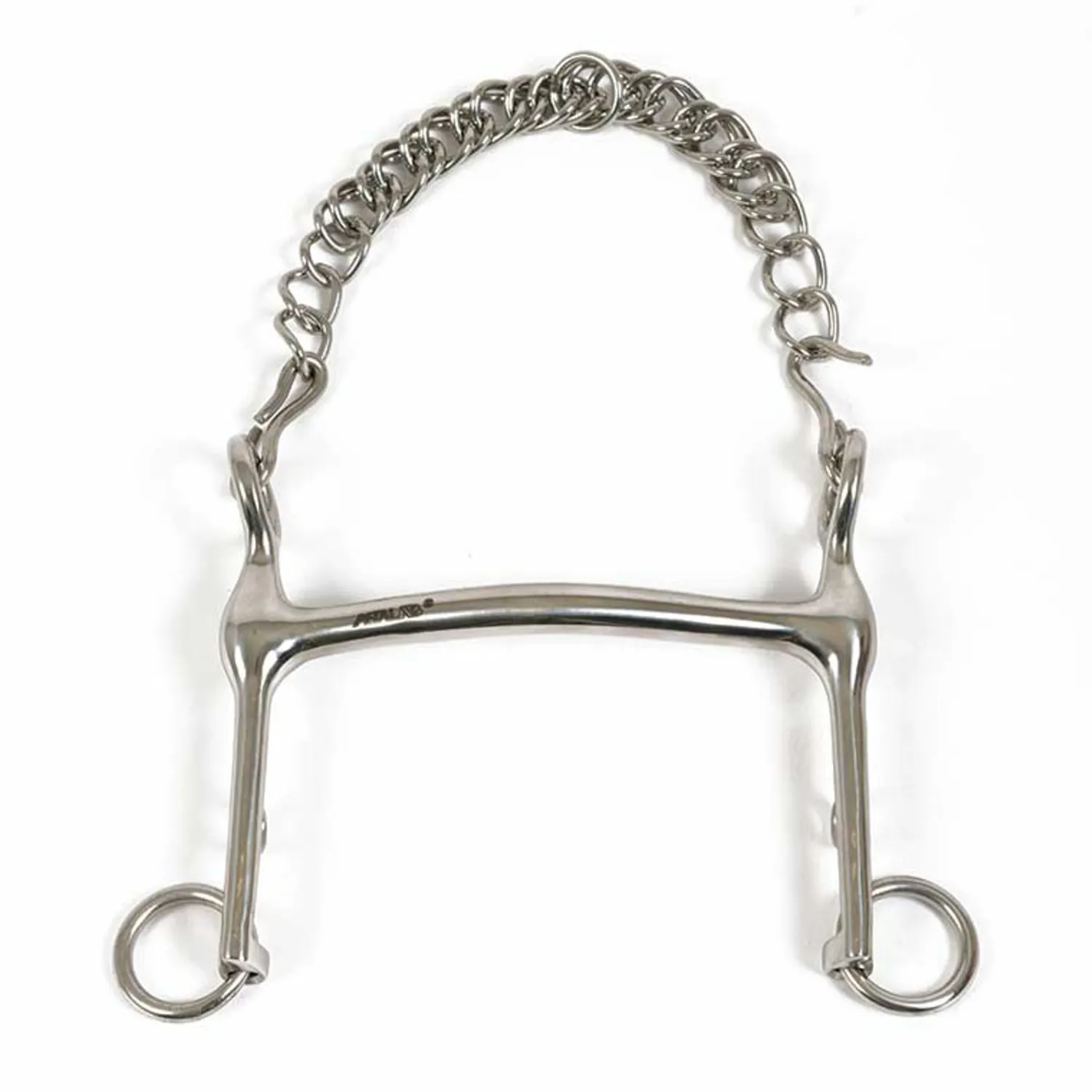 Metalab Curved Weymouth is a Level 4 bit made of stainless steel. It features a 14mm curved mouth. Curb chain and hooks included.