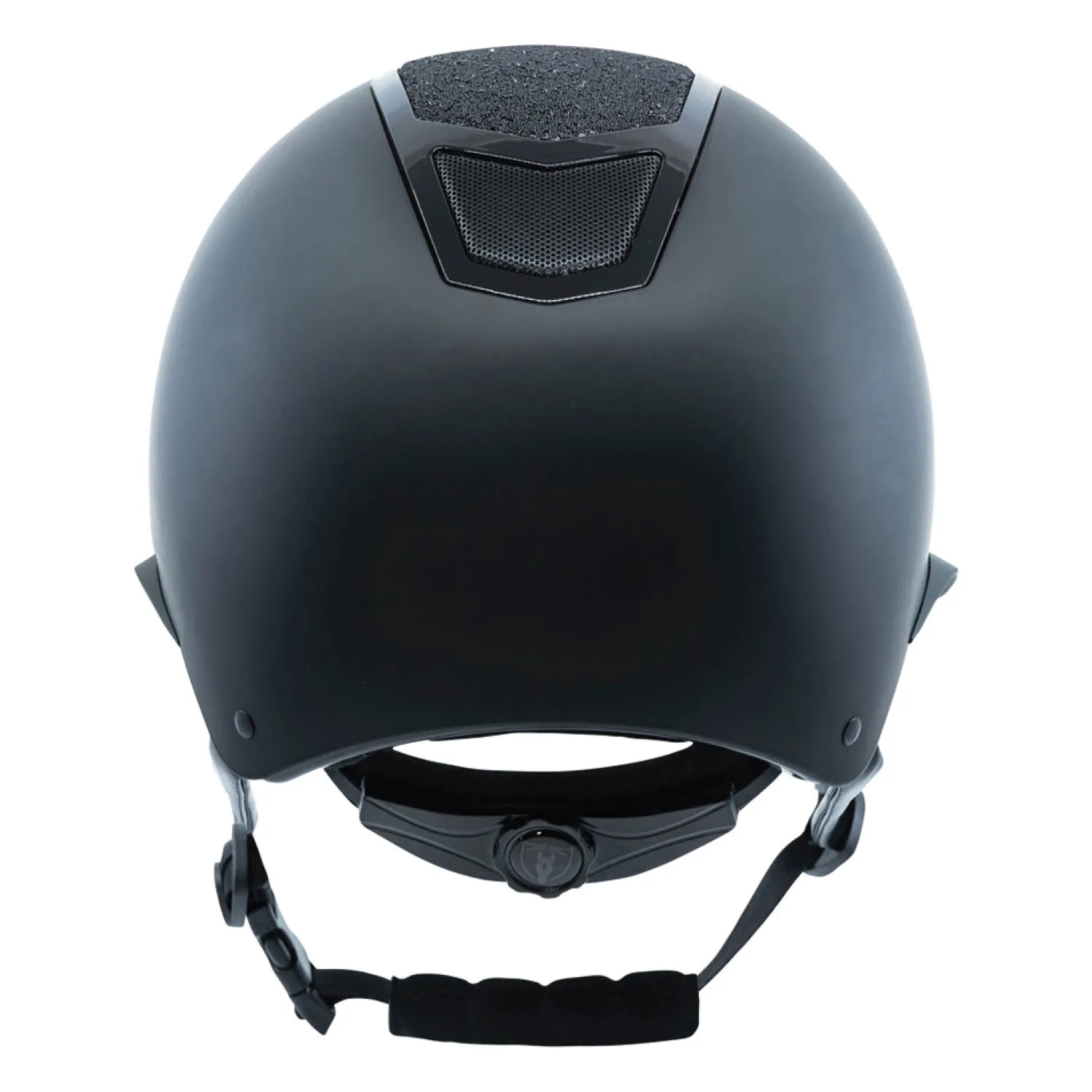 This riding helmet has an adjustable five-point synthetic leather harness with patented Duratex® buckle and includes a removable comfort chin pad. **SEI certified to ASTM F1163-23.