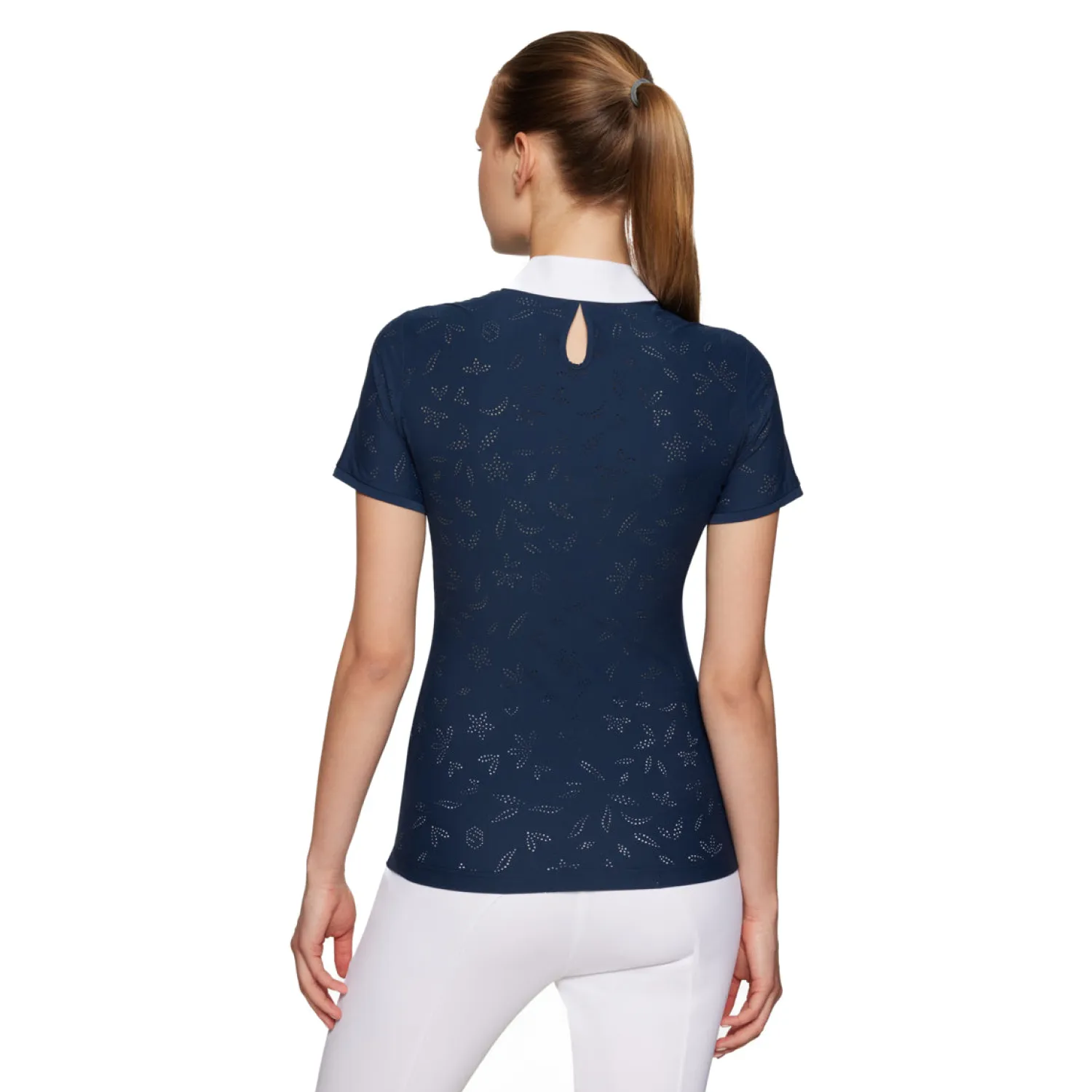 Beautiful flower perforations on the Samshield® Ladies’ Aloise Air Short-Sleeve Show Shirt add breathability and style. Extremely comfortable, quick-dry fabric has high stretch and is wrinkle free. UPF 50+ protection for summer riding. Crystal detail on placket conceals a zipper underneath. Flower perforations on the sleeves and side panels and back allow for additional ventilation without being see through.