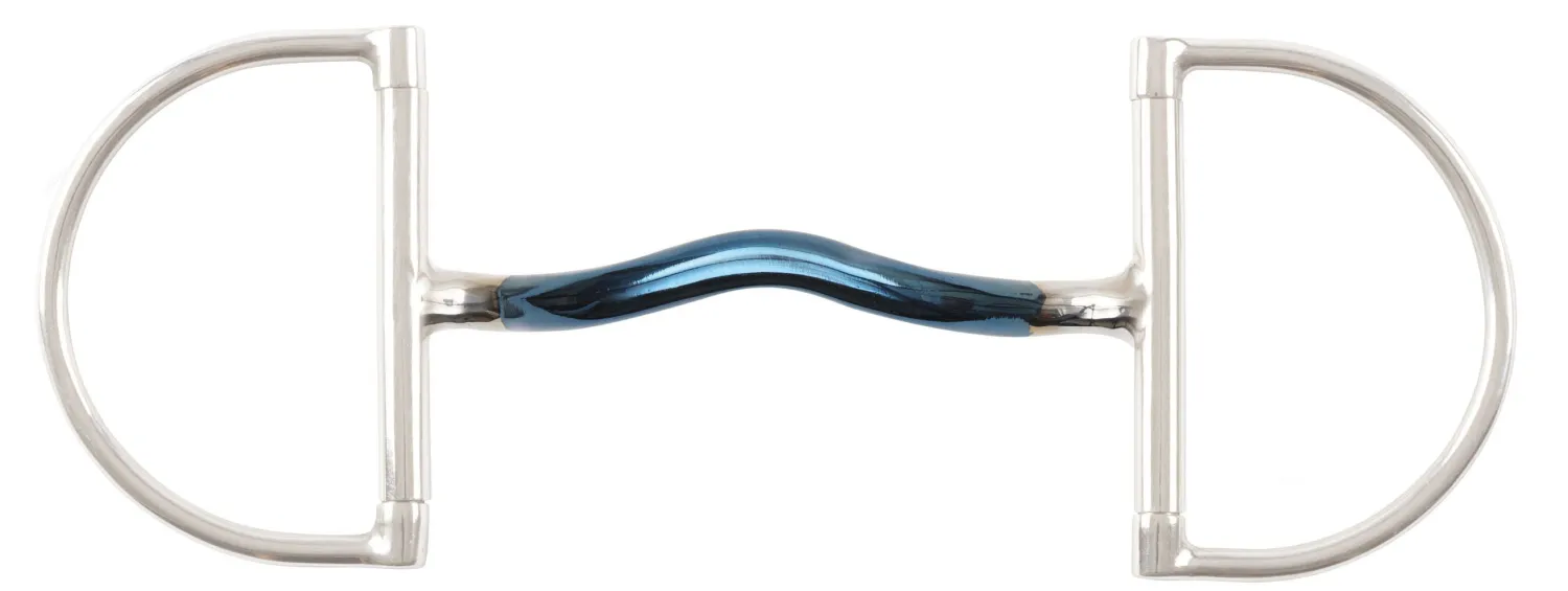 Blue Alloy Hunter D-Ring Bit with Mullen Mouth has a medium port that allows more room for the tongue and helps to relieve pressure. This bit is very stable in the horse’s mouth.