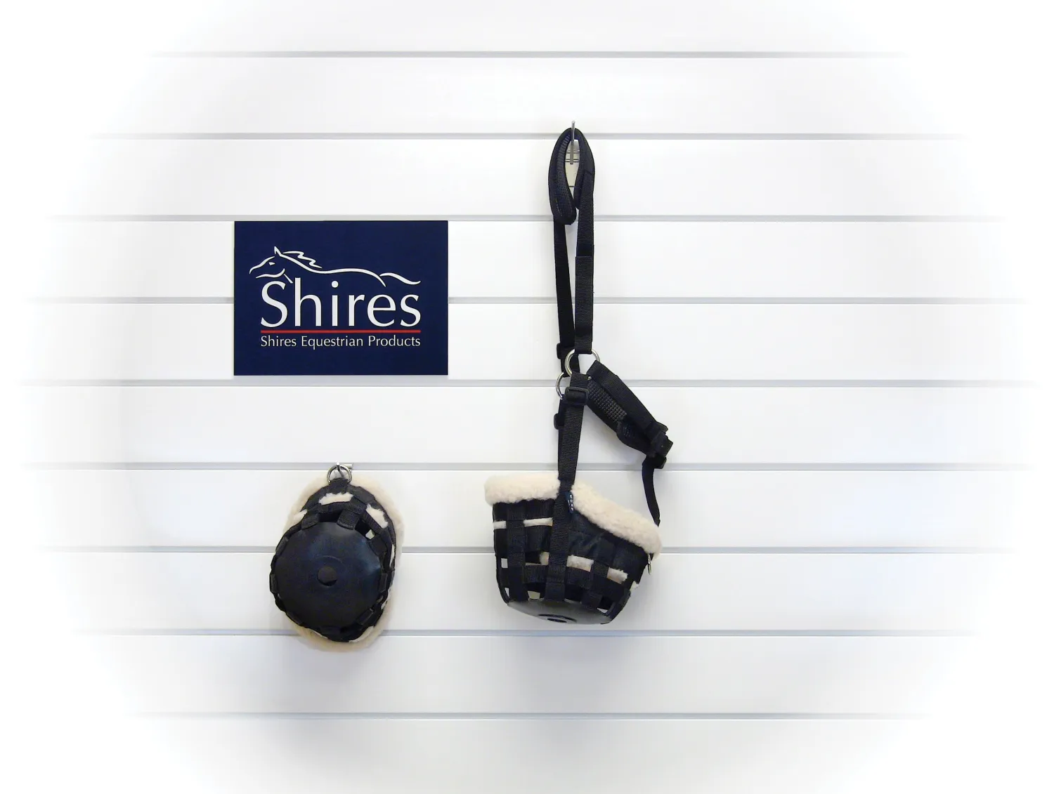 The Shires Deluxe Grass Muzzle helps you control your horse’s grass intake. Fully adjustable at crown, throat and cheeks, the heavy-duty nylon headstall has a hook-and-loop breakaway section at the crown. The muzzle has nylon sides and a rubber base with a small hole to limit your horse’s grazing activity. An additional padded insert at crown and throat adds horse comfort, and an additional fleece lining at the top of the muzzle helps guard against rubs.