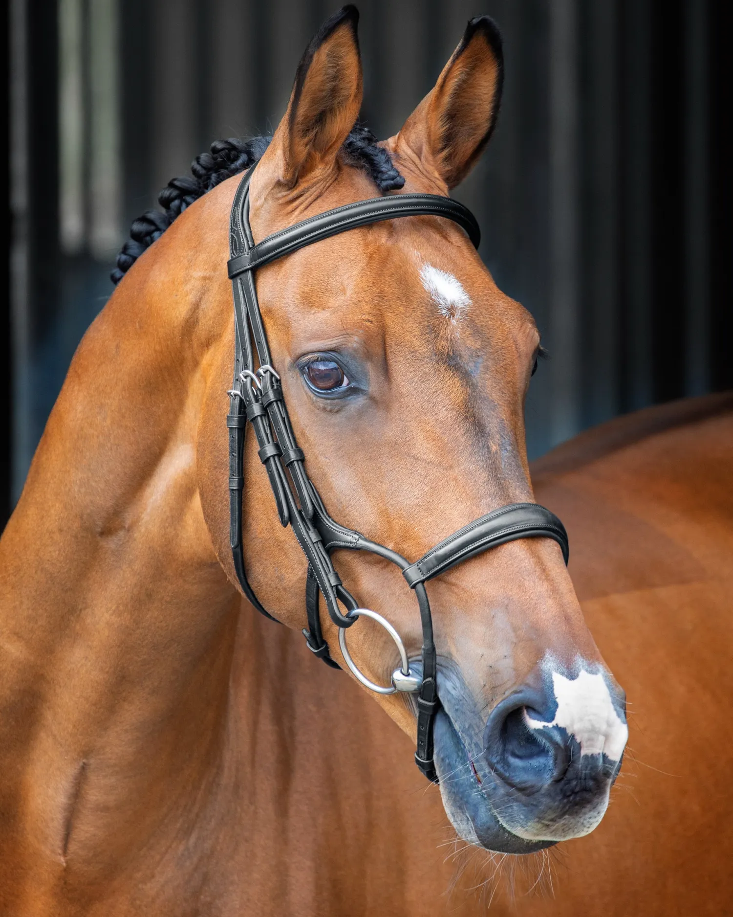 This bridle also boasts a FreedomFit crownpiece. Designed to relieve pressure, the cushioned crown has an airflow poll gap and cutaway freedom-ear profile. Soft leather is combined with generous, anti-shock padding on the headpiece, browband and noseband. A sleek, angled throatlatch creates an elegant profile.