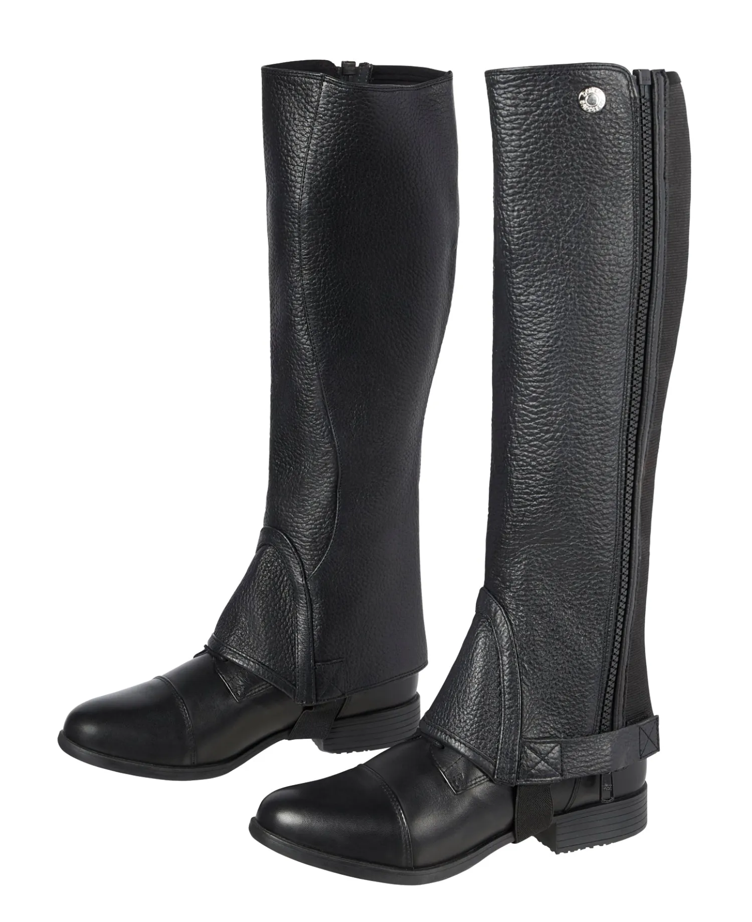 The DS Ready to Ride Half Chaps offer the best value in vegetable-tanned, full-grain cow leather that will only feel softer with use. Crafted with quality to ensure lasting wear, these half chaps are lined with a breathable, stretchy cotton/Lycra® fabric. Interior Equestrian Grip Strip™ is a stripe of silicone grip that prevents the half chap from twisting and sliding.