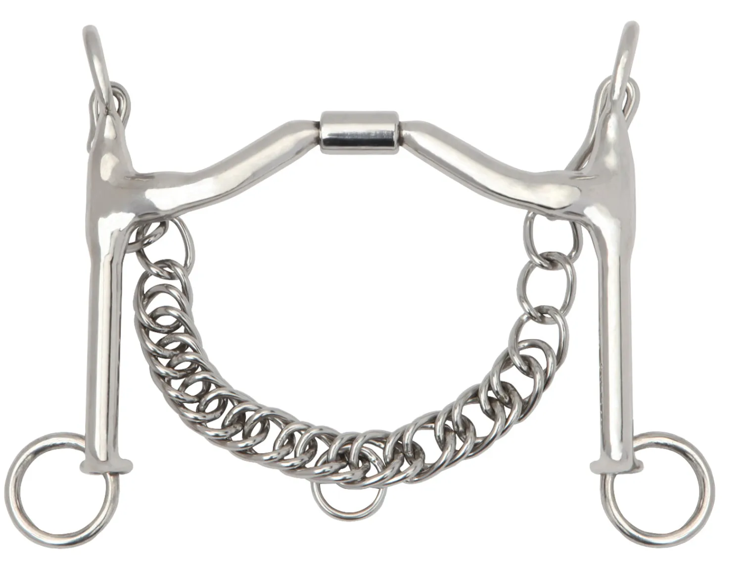 Designed for horses that are considered finished, it has a generously wide port that allows room for the tongue to pass under the bit and swallow. This mouthpiece applies little to no tongue pressure, working primarily off the bars, chin and poll.