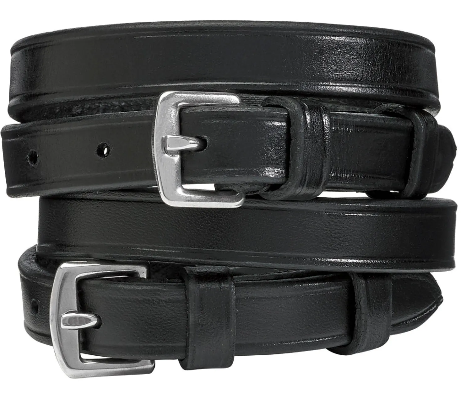 Toklat® Premium Leather Spur Straps are half-inch wide. Equipped with double keepers so strap will lay flat against your boot. Stainless steel buckle. Black. Pair.