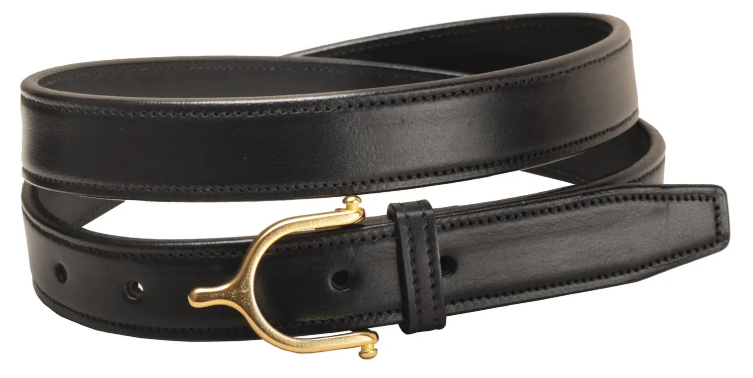 Made in the USA from premium, supple bridle leather, this Tory Leather 1″ Brass Spur Buckle Belt features a buckle modeled after a classic English spur. Belt comes in a perfect width to fit most loops on breeches and jeans. Nicely finished with stitched edges. Buckle is sewn on.