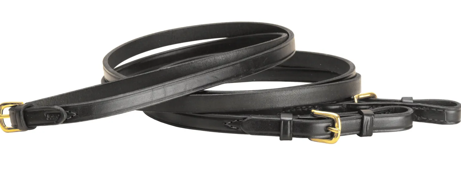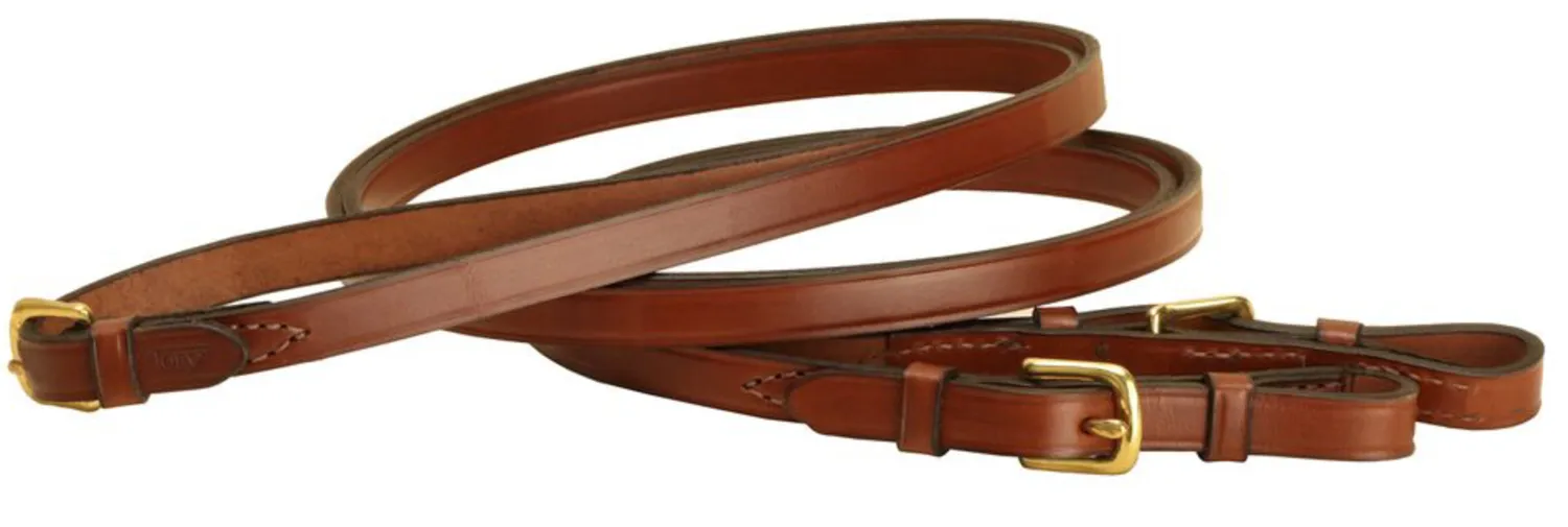 These Tory 5/8″ x 60″ Flat Reins feature plain creased leather and buckles at bit ends and center.
