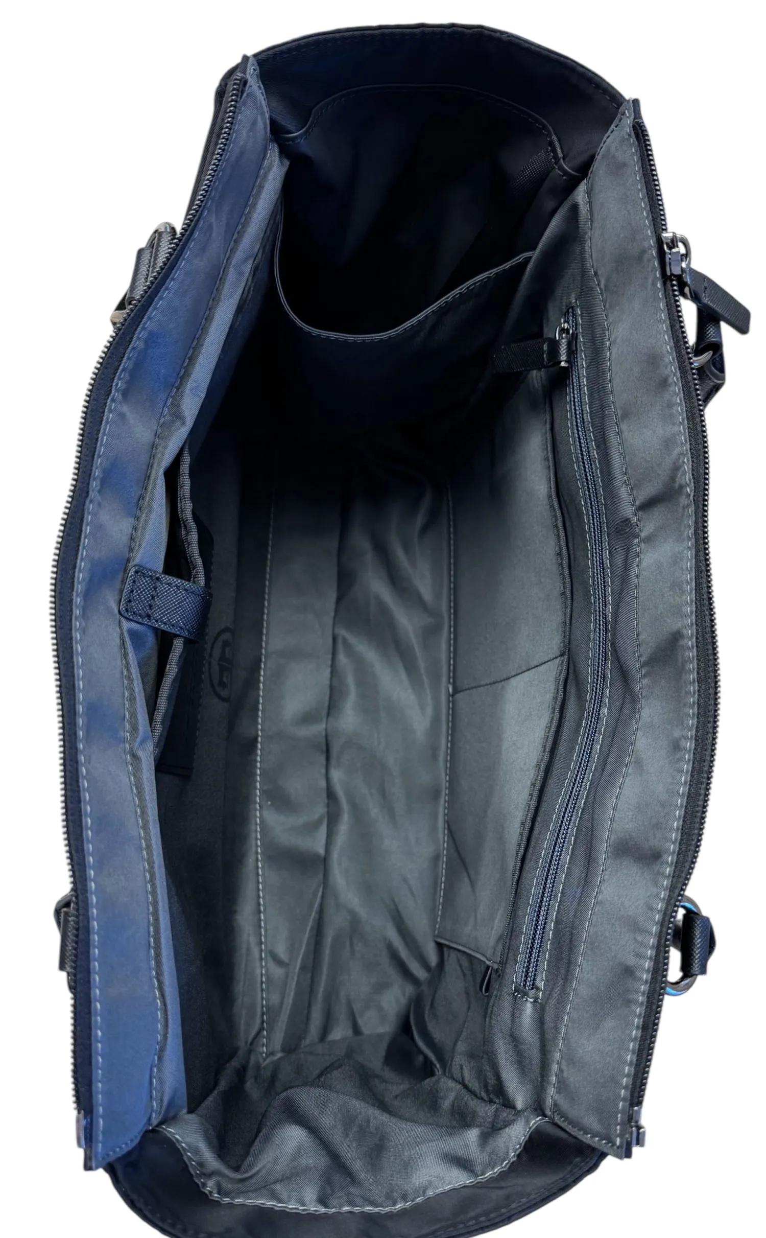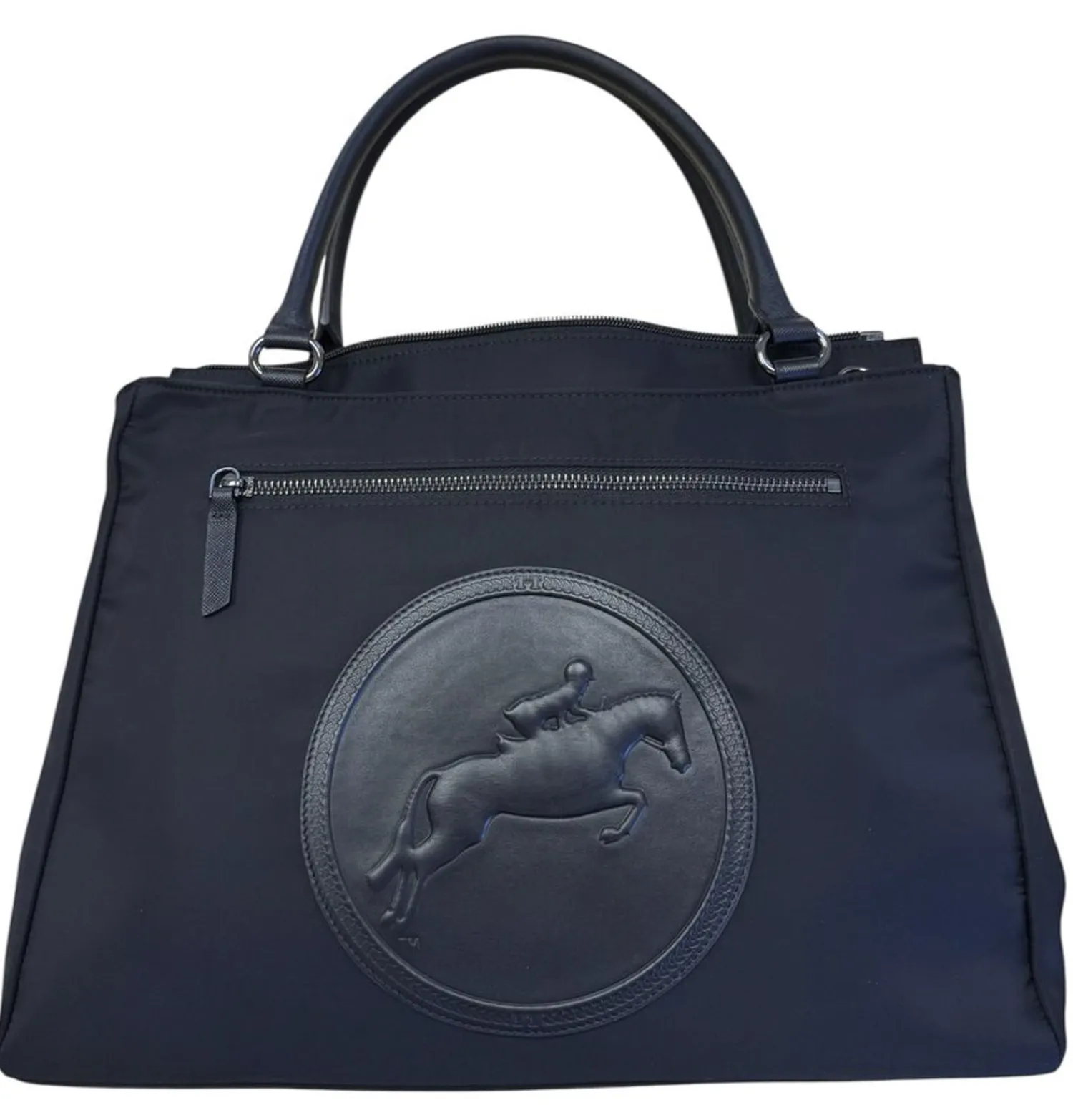 Carry your equestrian style to your work spaces and beyond in our Tucker Tweed Equestrian™ Large Office Tote. This nylon/leather upscale tote is a pocket powerhouse! Interior pockets for laptop, drink, phone, cords and more. Exterior completed with gunmetal hardware, matching zipper pockets both front/back and trolley sleeve. Includes adjustable shoulder strap. Fits 15″PC/16″ MacBook size laptop.