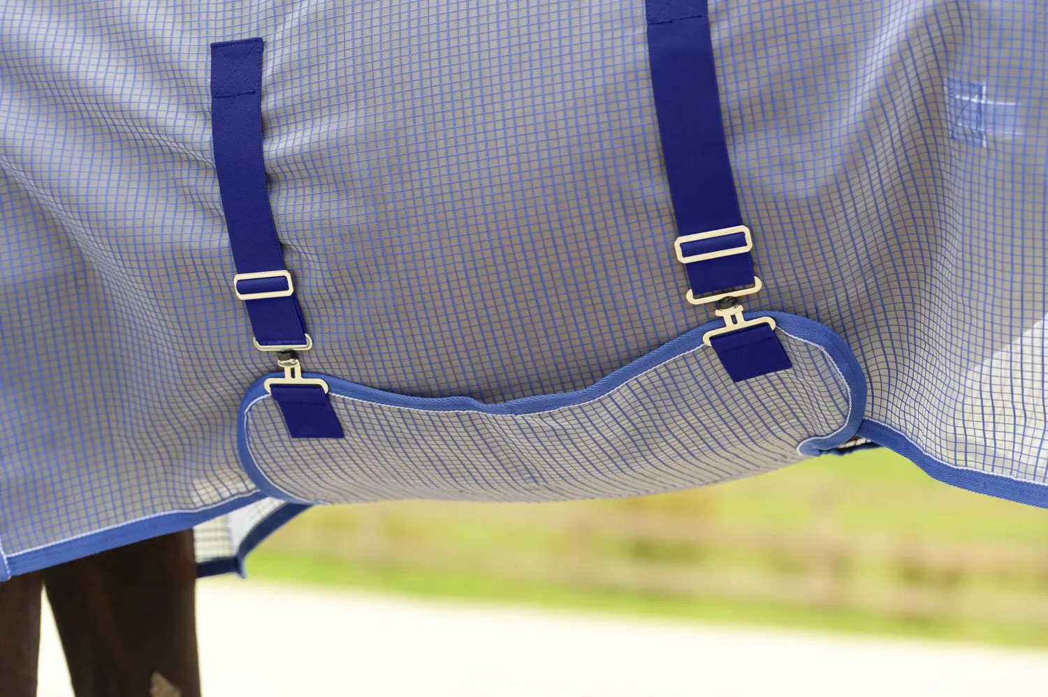 Twin chest straps allow for an adjustable fit and easy open and close. The adjustable belly band fully covers the horse’s belly to give complete protection from biting insects in this sensitive area, and it’s removable for easy washing. Adjustable, removable web/elastic leg straps move and stretch with the horse to ensure comfort and fit. Detach-A-Neck provides extra coverage against the insects when needed.