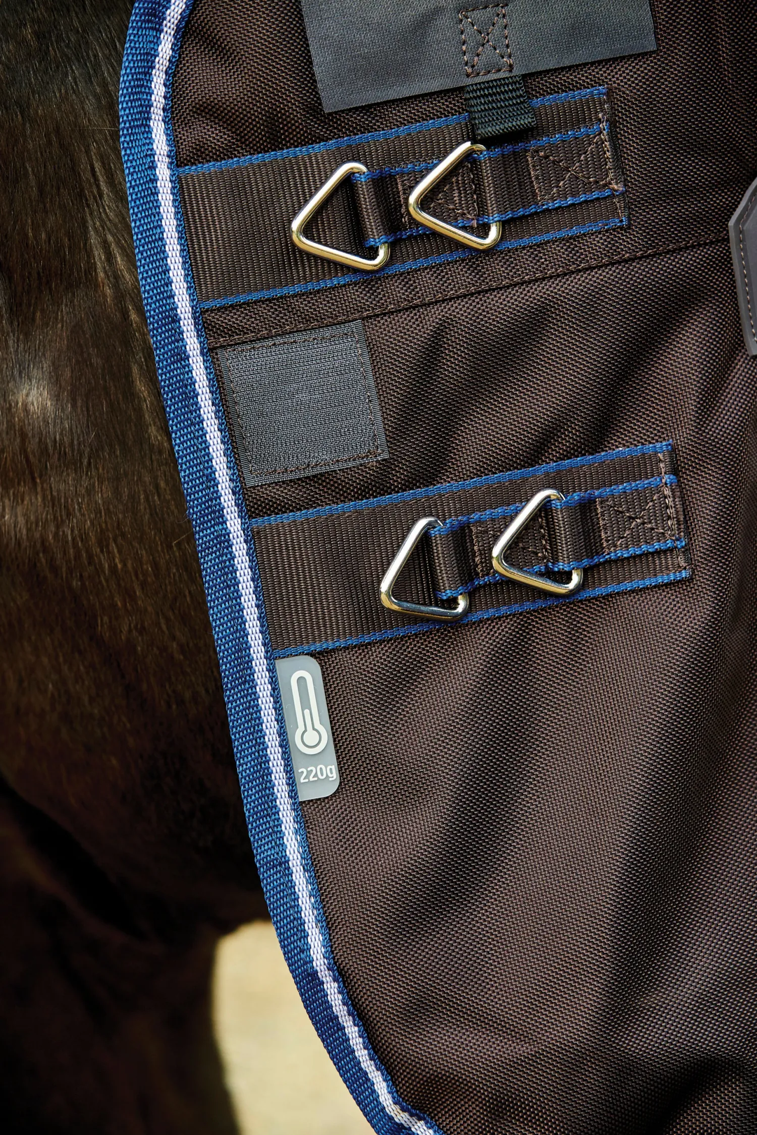 The WeatherBeeta® ComFiTec™ Ultra Cozi II Detach-A-Neck Medium-Weight Turnout Blanket is the snuggest blanket WeatherBeeta ever made! This top-of-the-line turnout is loaded with features to deliver optimal comfort and performance for your horse. Insulated with 220 grams of poly fill, it has an extremely strong 1680 denier ballistic nylon outer shell with a Teflon® coating that is both waterproof and breathable. It is lined with smooth 210T nylon to glide over your horse’s coat.