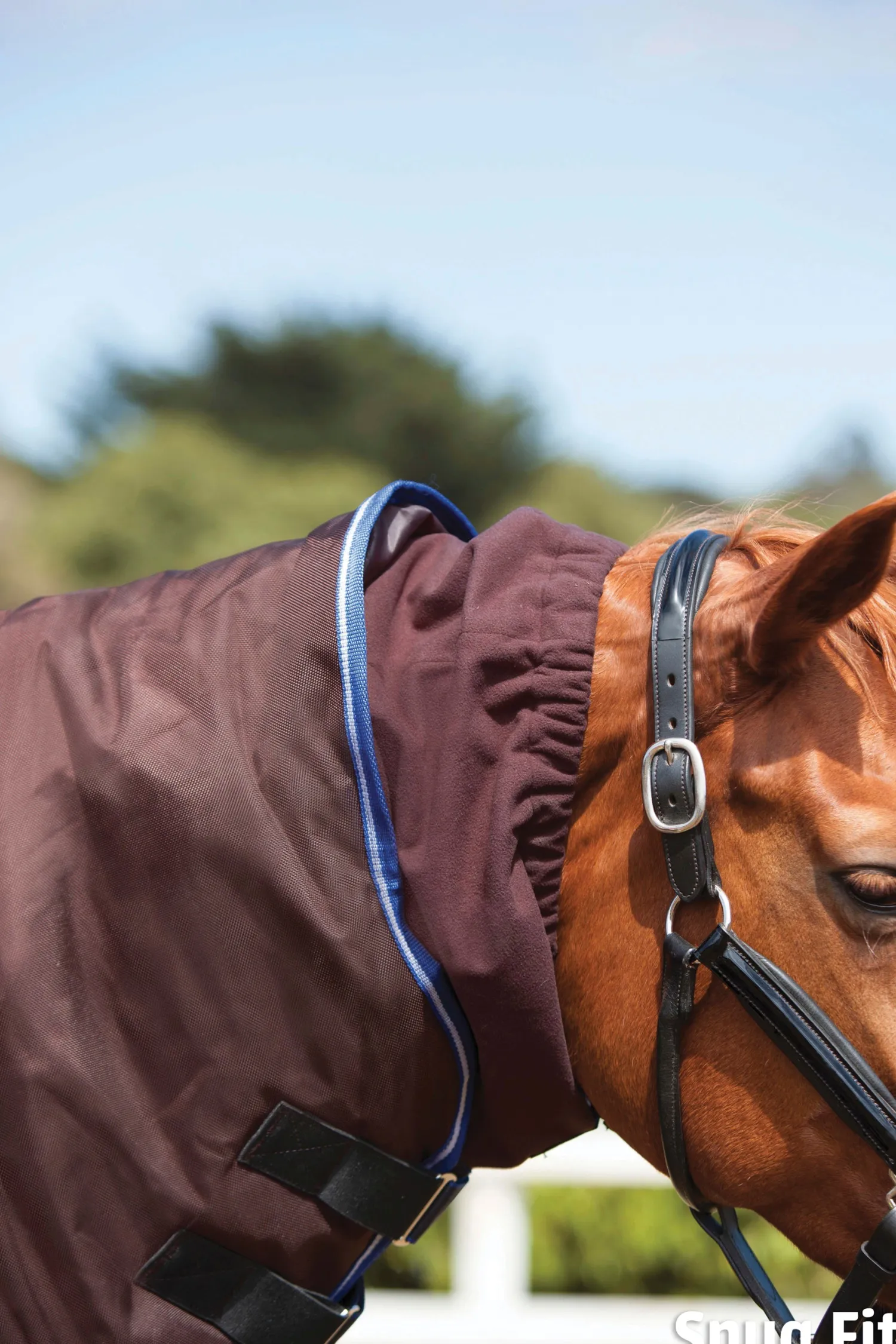 The removable neck cover is designed to provide a close fit for the ultimate warmth and protection of the horse’s neck. A memory foam wither relief pad contours to the horse’s shape and lifts the rug off the withers to reduce rubbing.