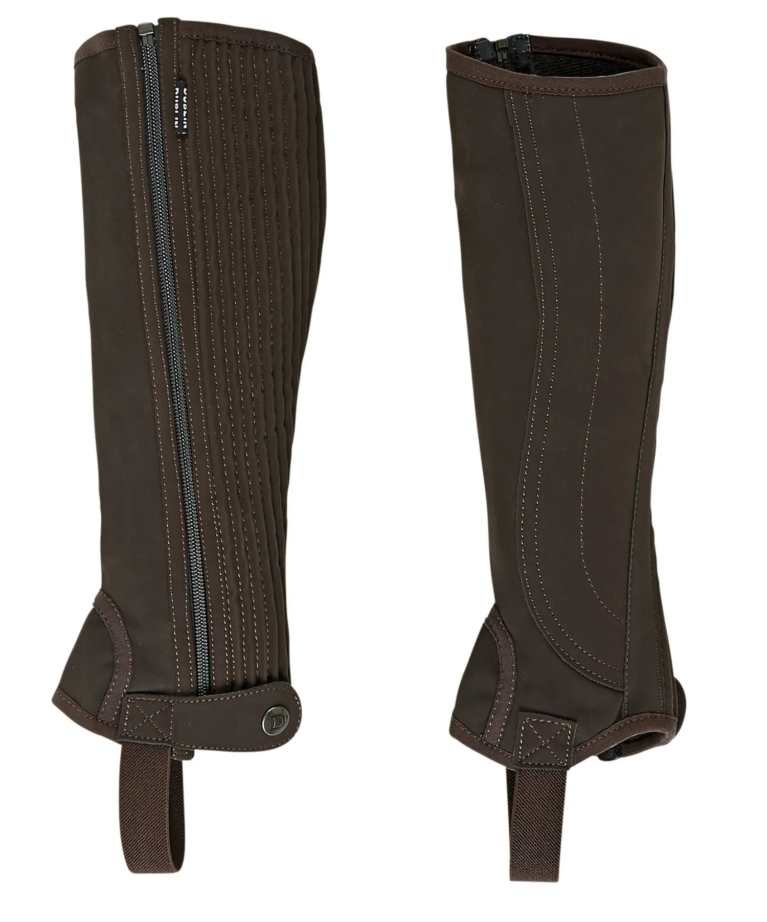 An improved design lets this Dublin® Children’s Easy-Care II Half Chap perform even better than the original. This kids’ half chap is made of washable, durable synthetic suede with a durable YKK® zipper that closes from the top down. Elasticized calf for a great fit, heavy-duty elastic foot strap and branded press stud on the zipper keeper. A comfortable, attractively-priced half chap.