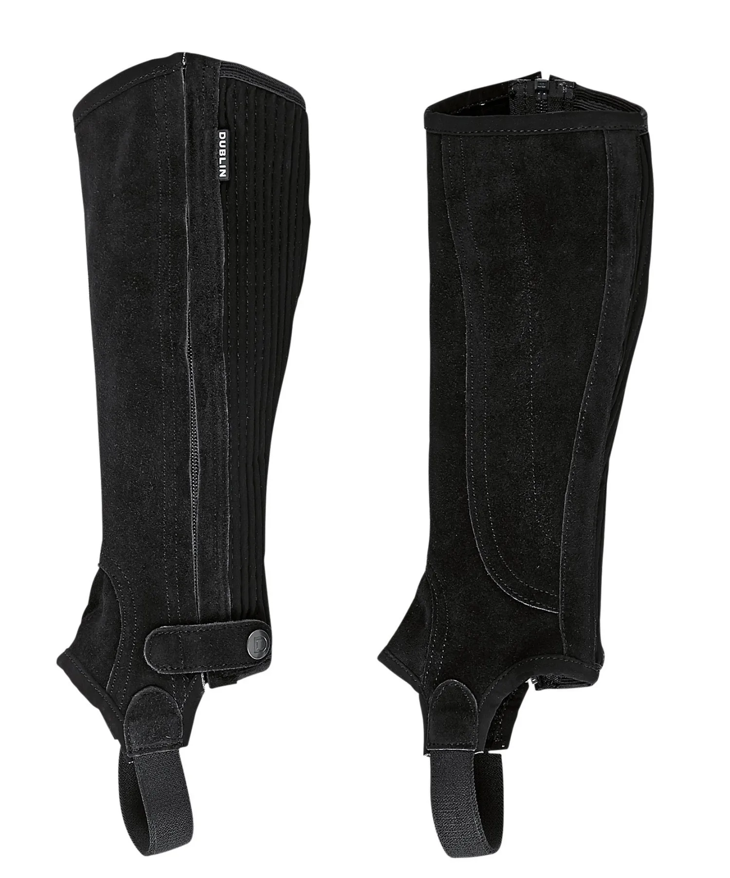 The improved Dublin® Children’s Suede II Half Chap offers great performance and a secure fit. Constructed with a heavy-duty YKK® zipper, this half chap for kids features a tapered cut, an elasticized calf panel and a heavy-duty elastic foot strap. It closes from the top down and has a bottom snap closure with branded press stud.