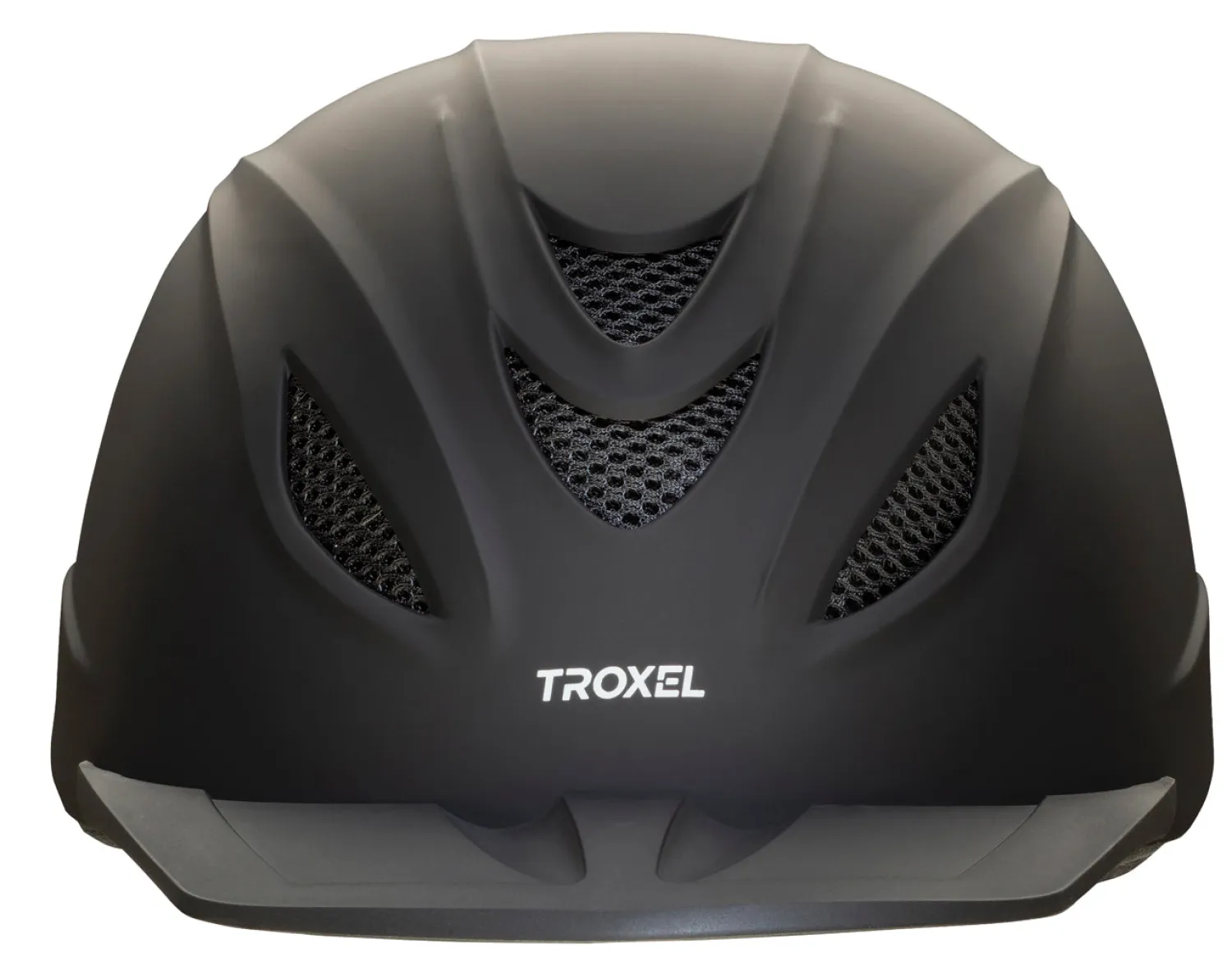 This Troxel® Intrepid Helmet** is an ultralight, low profile design created for active riders. The self-adjusting SureFit™ Pro comfort system adjusts to the size and shape of the rider’s head to offer an unmatched level of comfort. The geometric visor shape and vent pattern create a sleek silhouette for a flattering look.