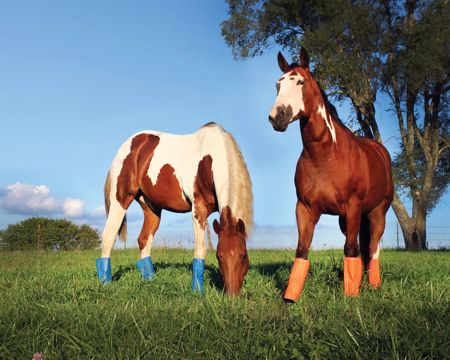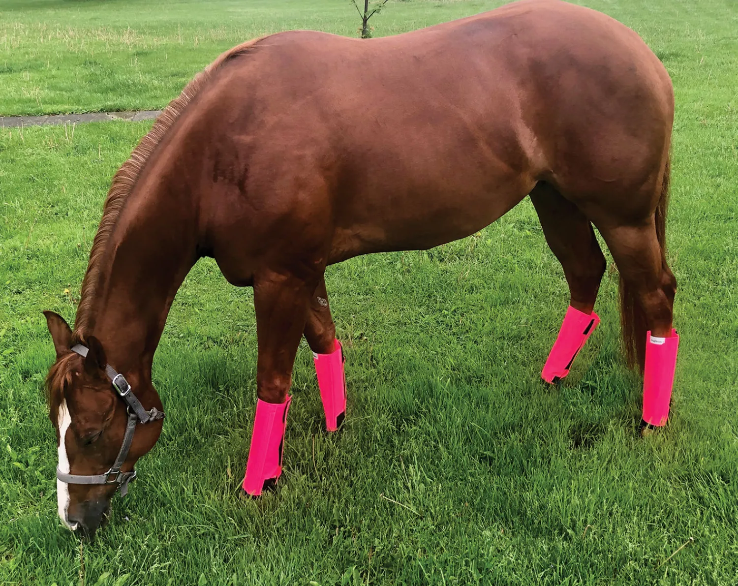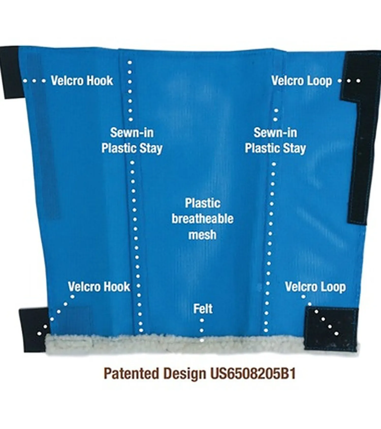 Patented protection from fly bites! This set of four Shoofly Leggins™ keeps flies off your horse’s legs. Made in the USA from flexible, plastic mesh to allow air circulation, they have unique sewn-in stays to keep them upright and prevent sagging. Heavy-duty Velcro® brand fasteners make these fly boots easy to put on and take off.