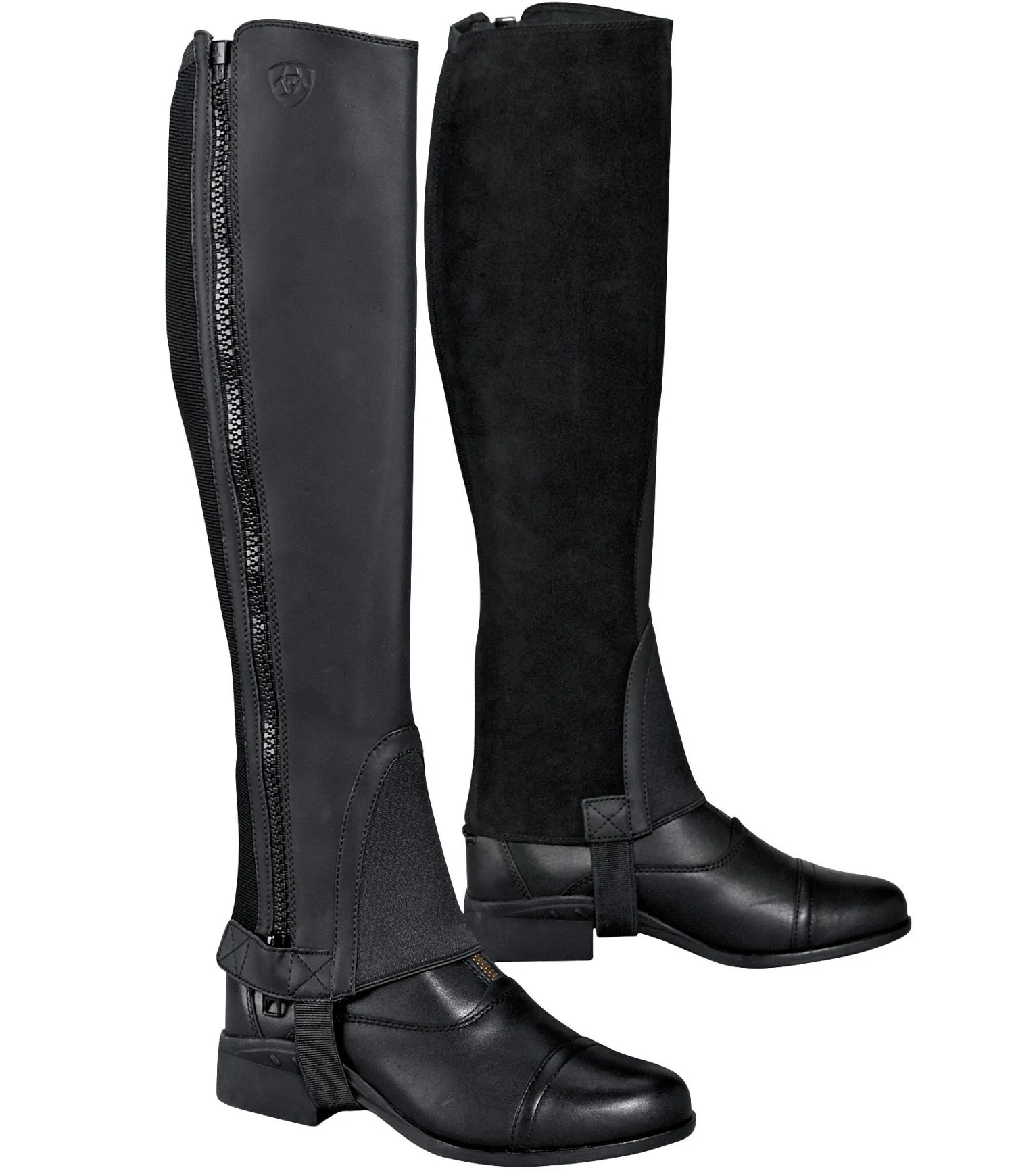 The Ariat® Scout Half Chap combines functionality and comfort in a design you’ll love riding in every day. Made of full-grain leather, it has a suede inner calf panel for grip and an elastic gore back panel for fit. A stretch skirt over the instep allows the ankle to flex without restriction. The side zipper closes top to bottom. A perfect mate to Ariat’s Scout Paddock!