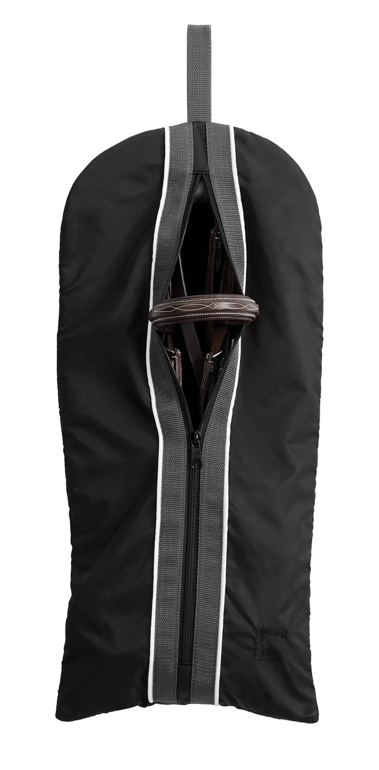 Full zipper for easy loading and unloading, top loop for hanging and an internal hook-and-loop fastener to keep your bridle neat, upright and secure. Easily embroidered with your name or a monogram.