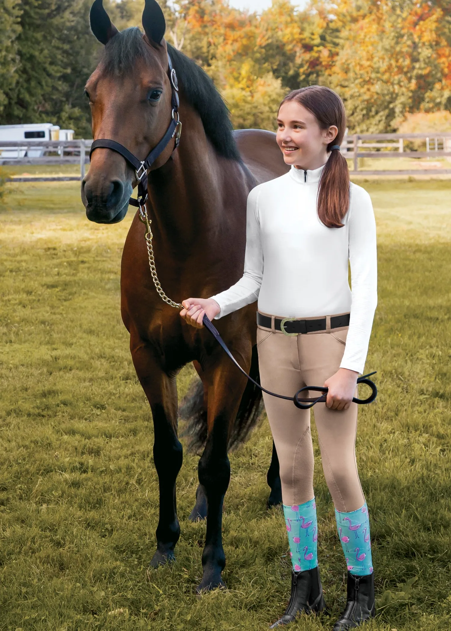 These ultra-thin Ovation® Kids’ Zocks Boot Socks fit smoothly under snug riding boots or half chaps. Stretchy and comfortable, these tube-style socks come in a variety of fun prints so young riders can have a distinctive look for every day of the week! Pair.