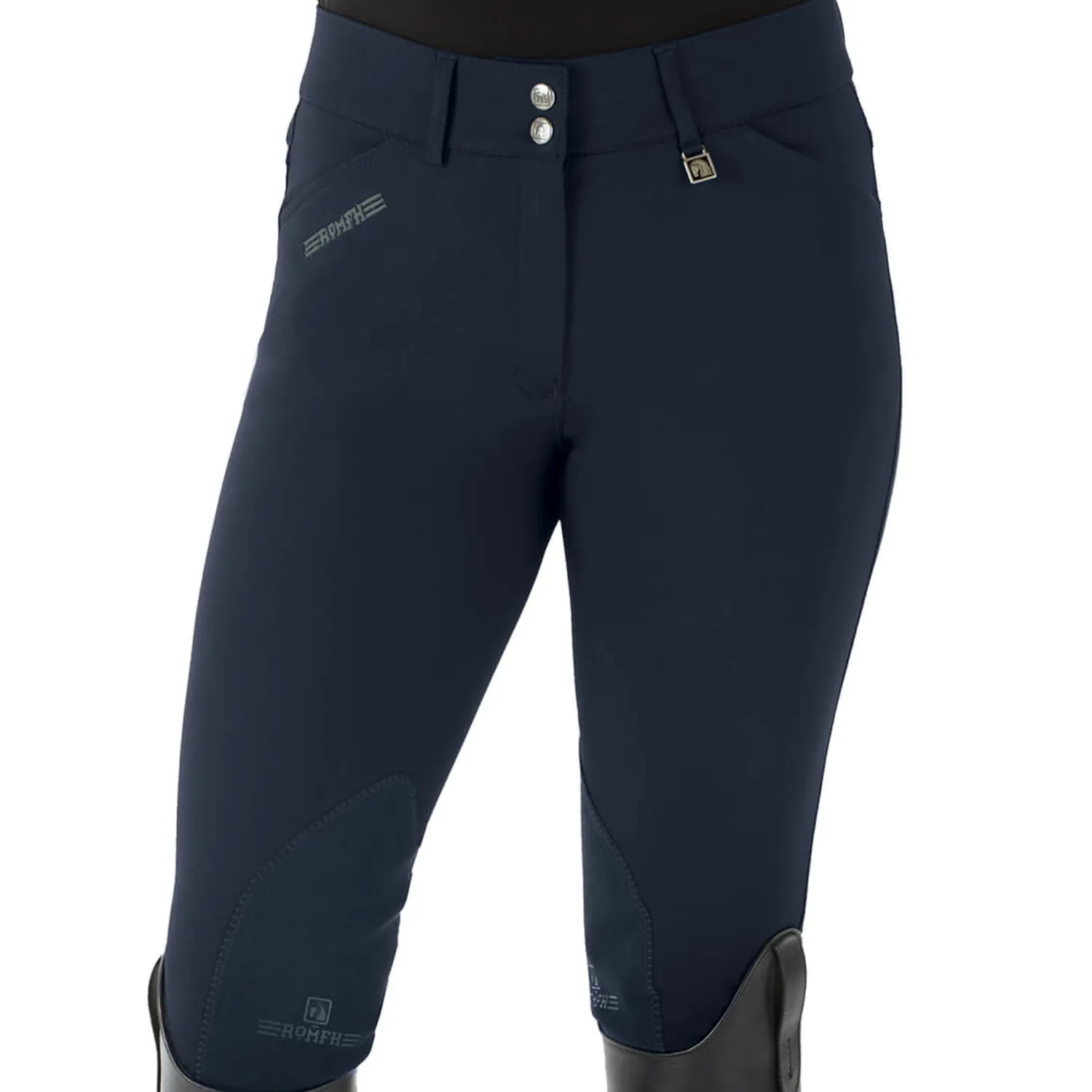 The Romfh® Isabella Silicone Full-Grip Breech is made of exclusive cooling Soft-Touch fabric in the same flattering, curvy cut as the super-popular Champion Full-Seat Breech. This “Curve Fit” is a special cut to reduce any gapping at the back waist; it is nipped in at the waist and cut fuller through the seat and thigh for a perfect fit on curvy girls.